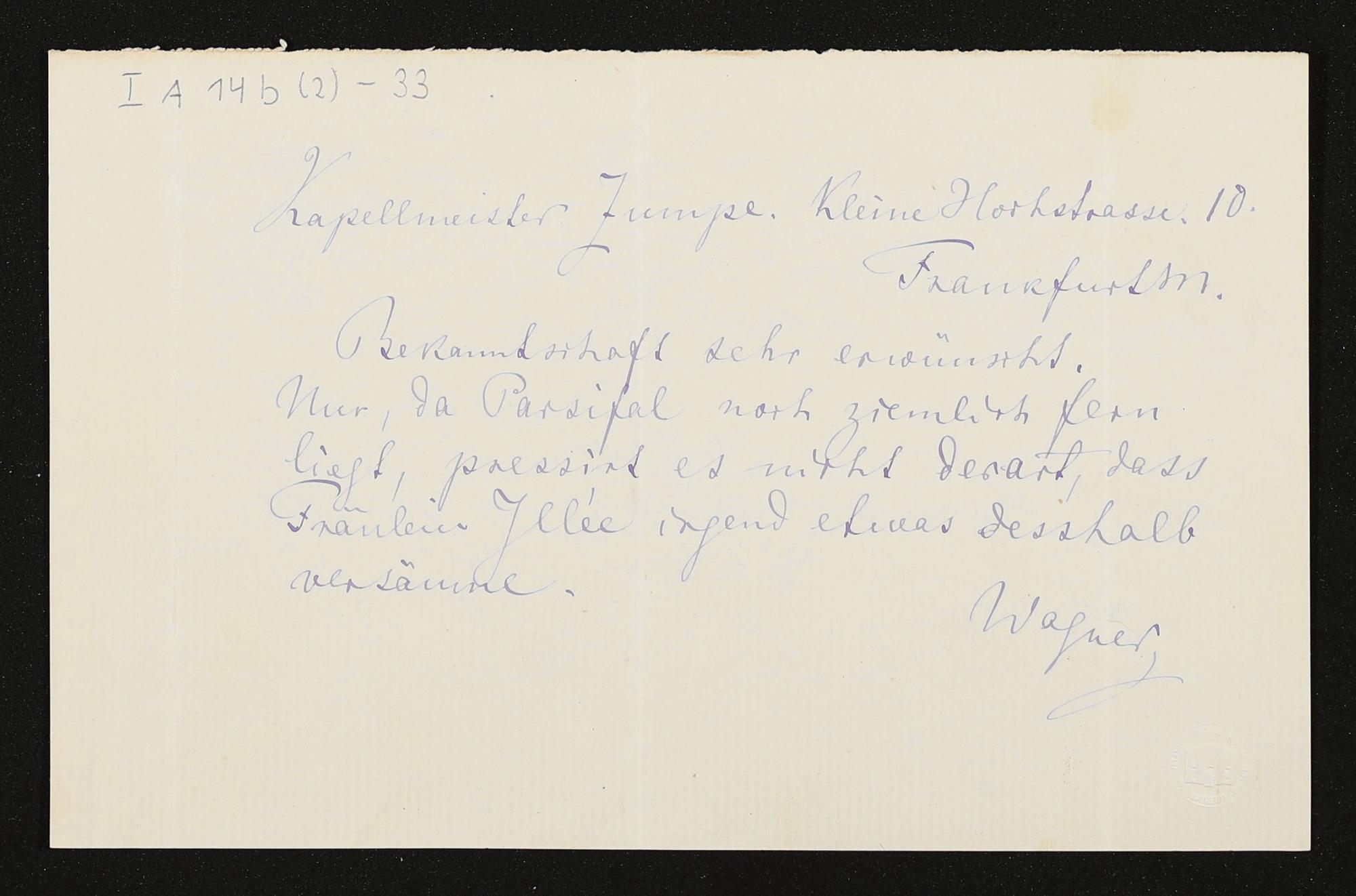 eigenhändige Briefkarte von Richard Wagner an Hermann Zumpe