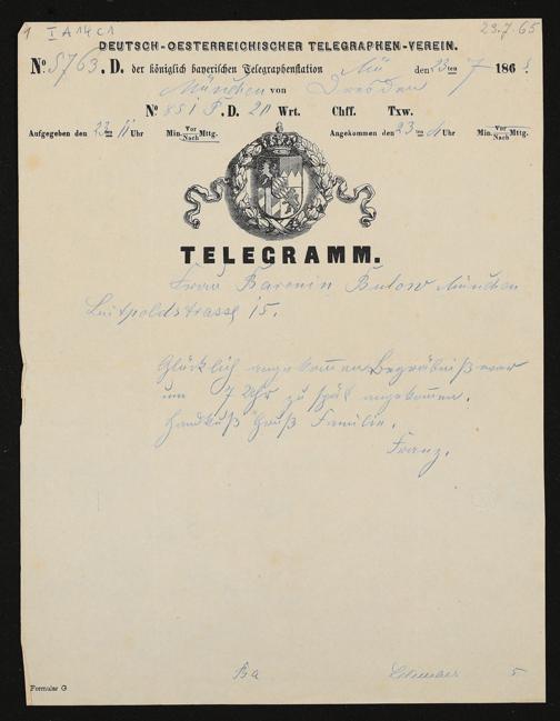 Telegramm von Franz Unbekannt an Cosima von Bülow