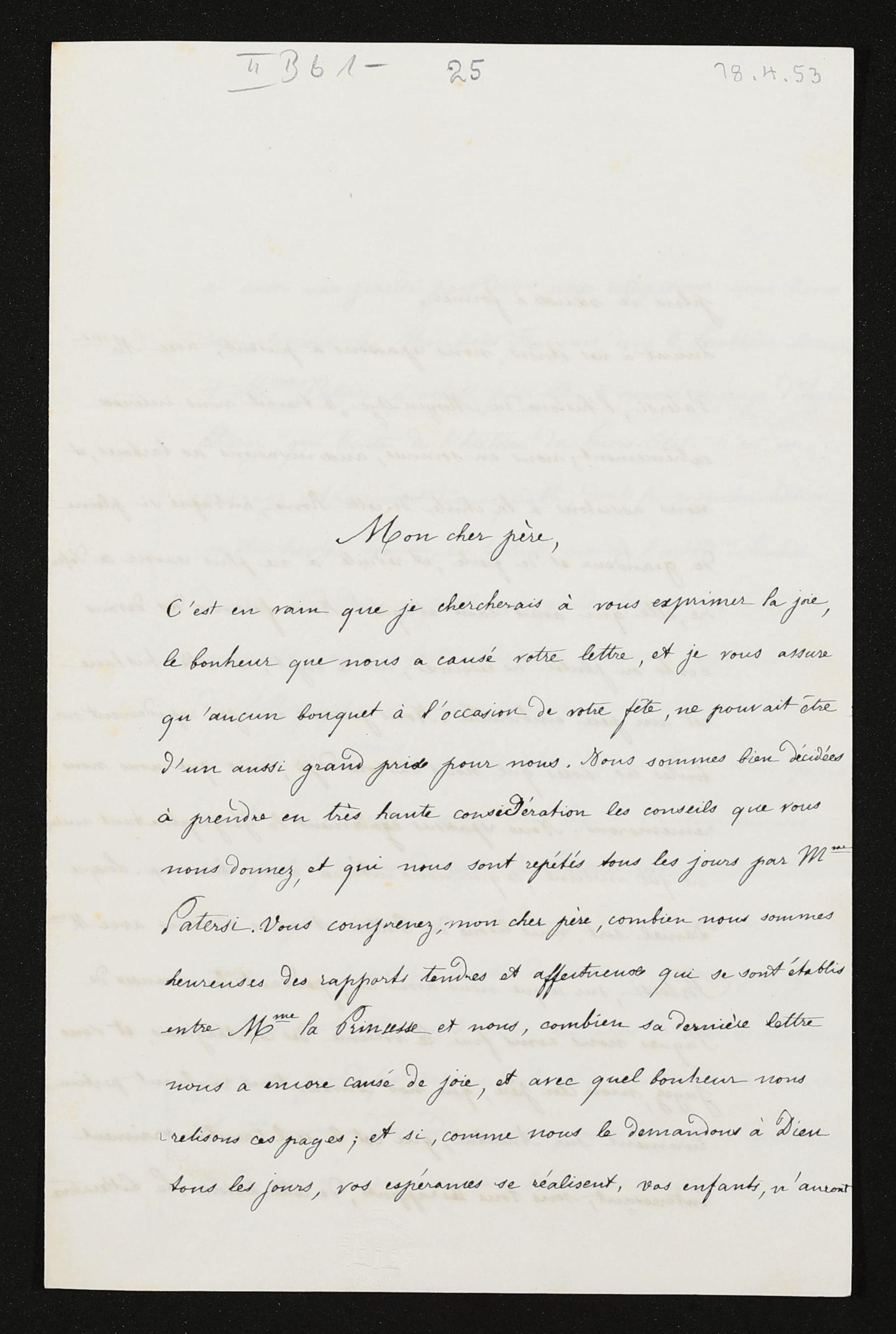 eigenhändiger Brief von Cosima Wagner an Franz Liszt