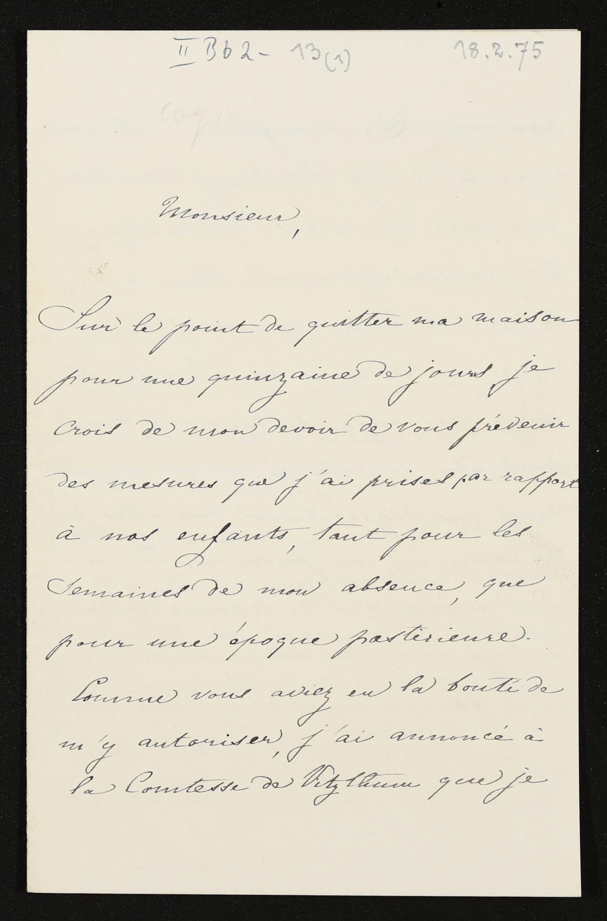 eigenhändiger Brief von Cosima Wagner an Hans von Bülow