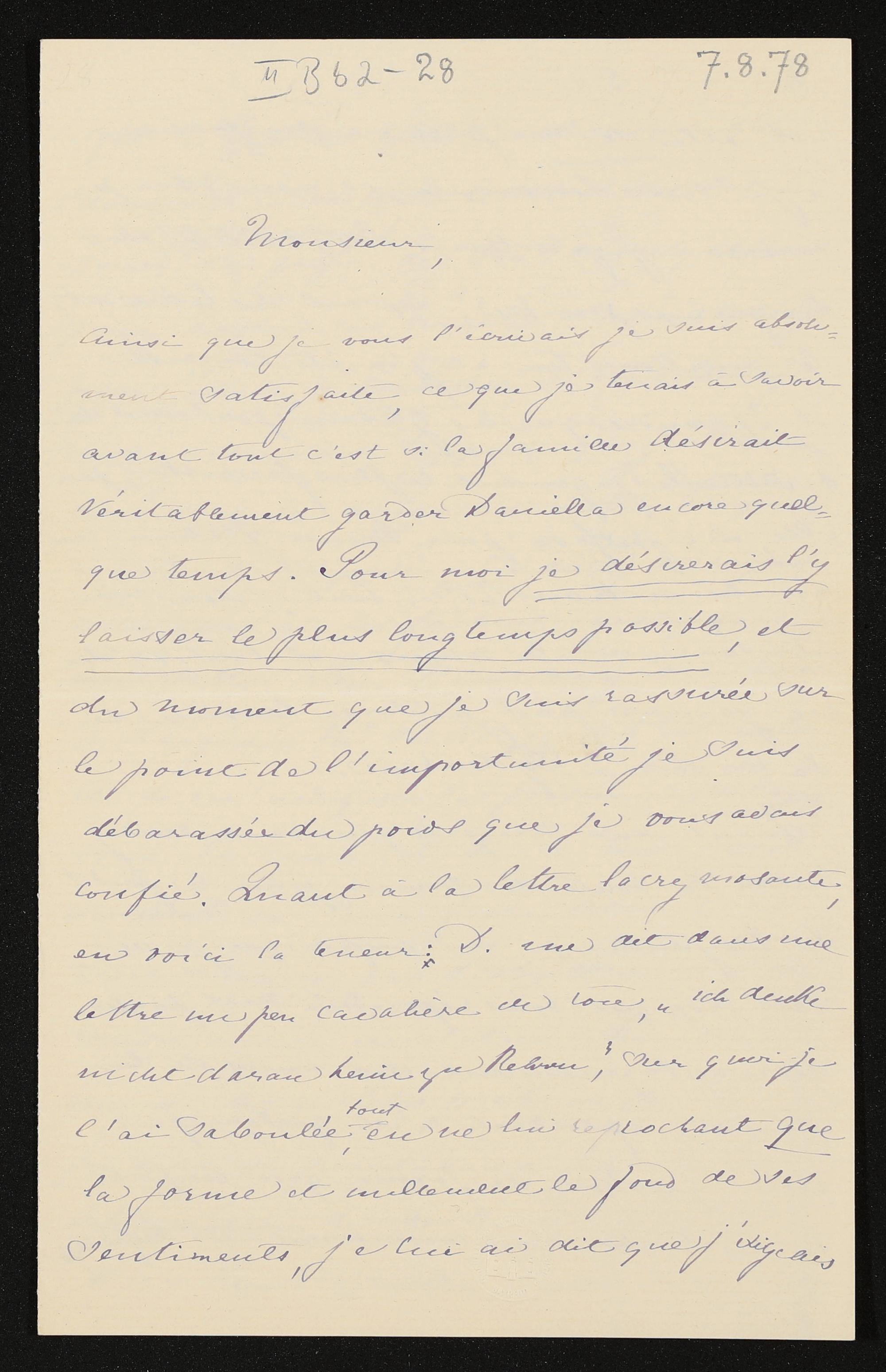 eigenhändiger Brief von Cosima Wagner an Hans von Bülow
