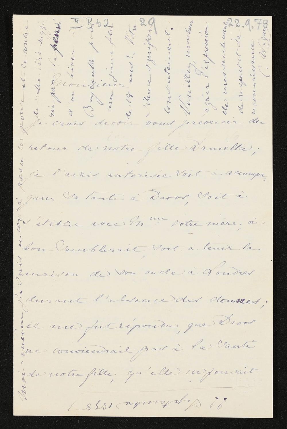 eigenhändiger Brief von Cosima Wagner an Hans von Bülow