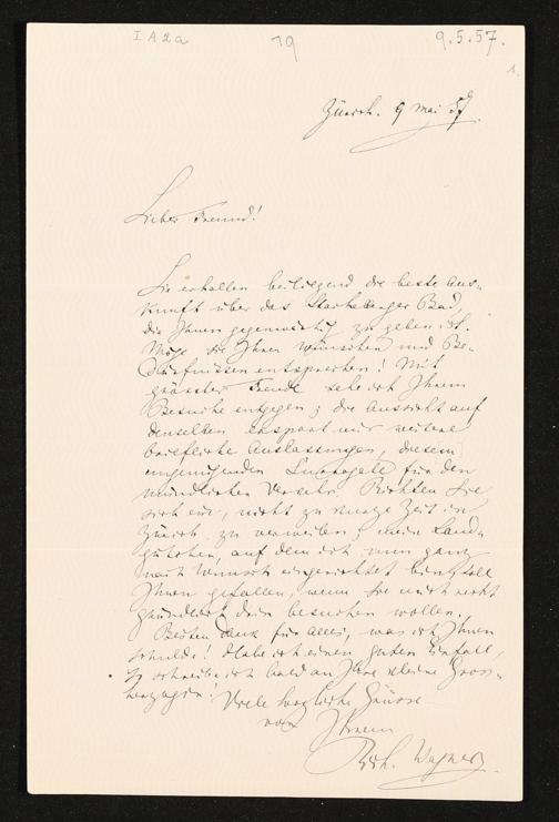 eigenhändiger Brief von Richard Wagner an Eduard Devrient