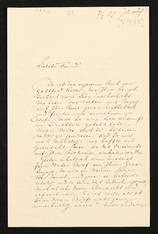 eigenhändiger Brief von Richard Wagner an Eduard Devrient