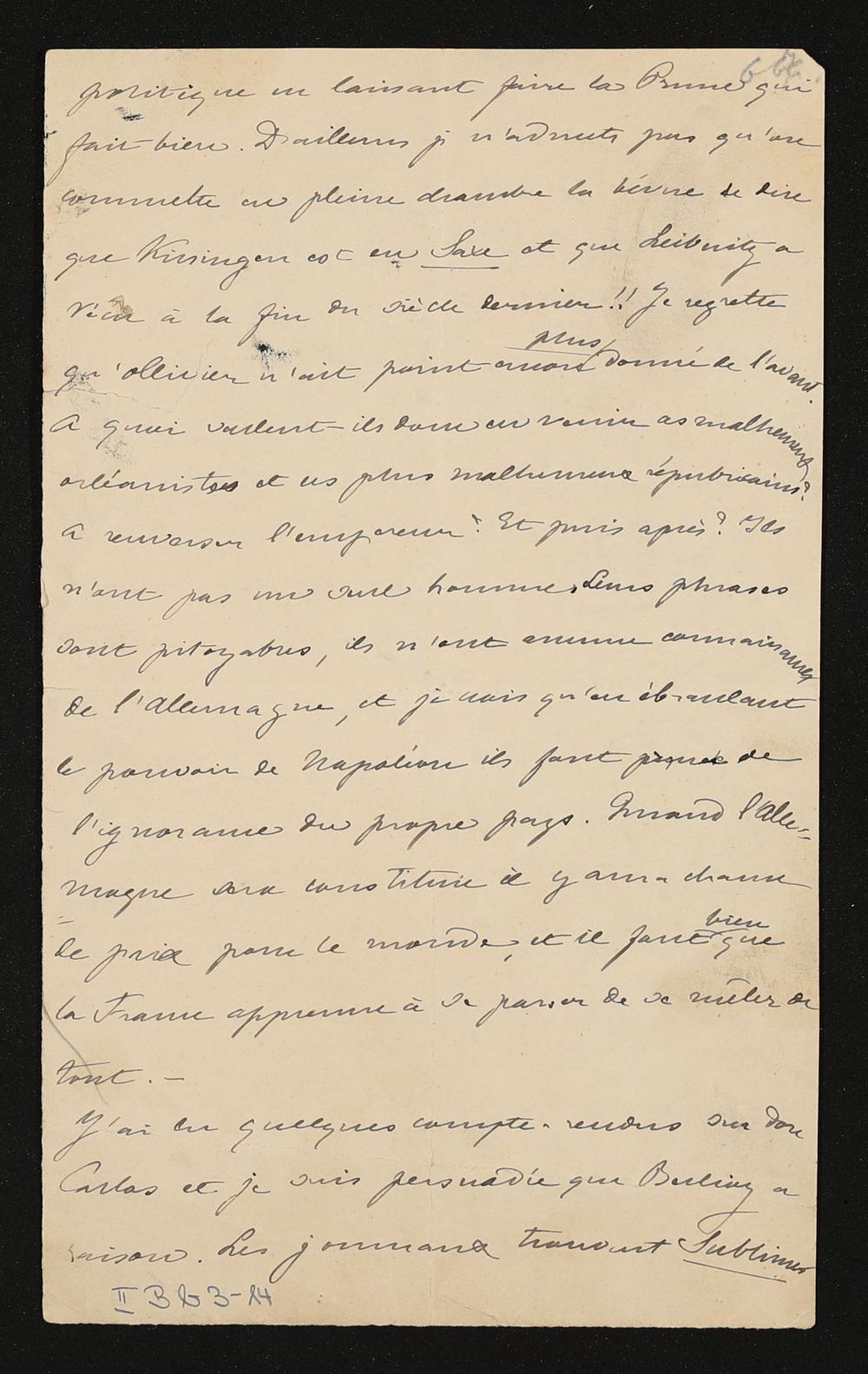 unvollständiger eigenhändiger Brief von Cosima Wagner an Marie d'Agoult