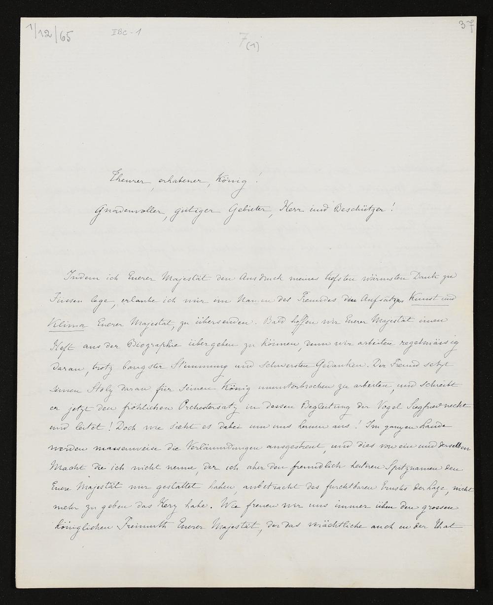 eigenhändiger Brief von Cosima Wagner an König Ludwig II. von Bayern