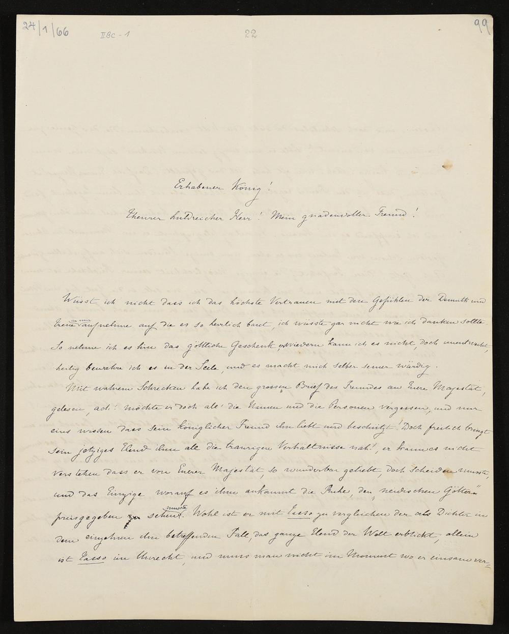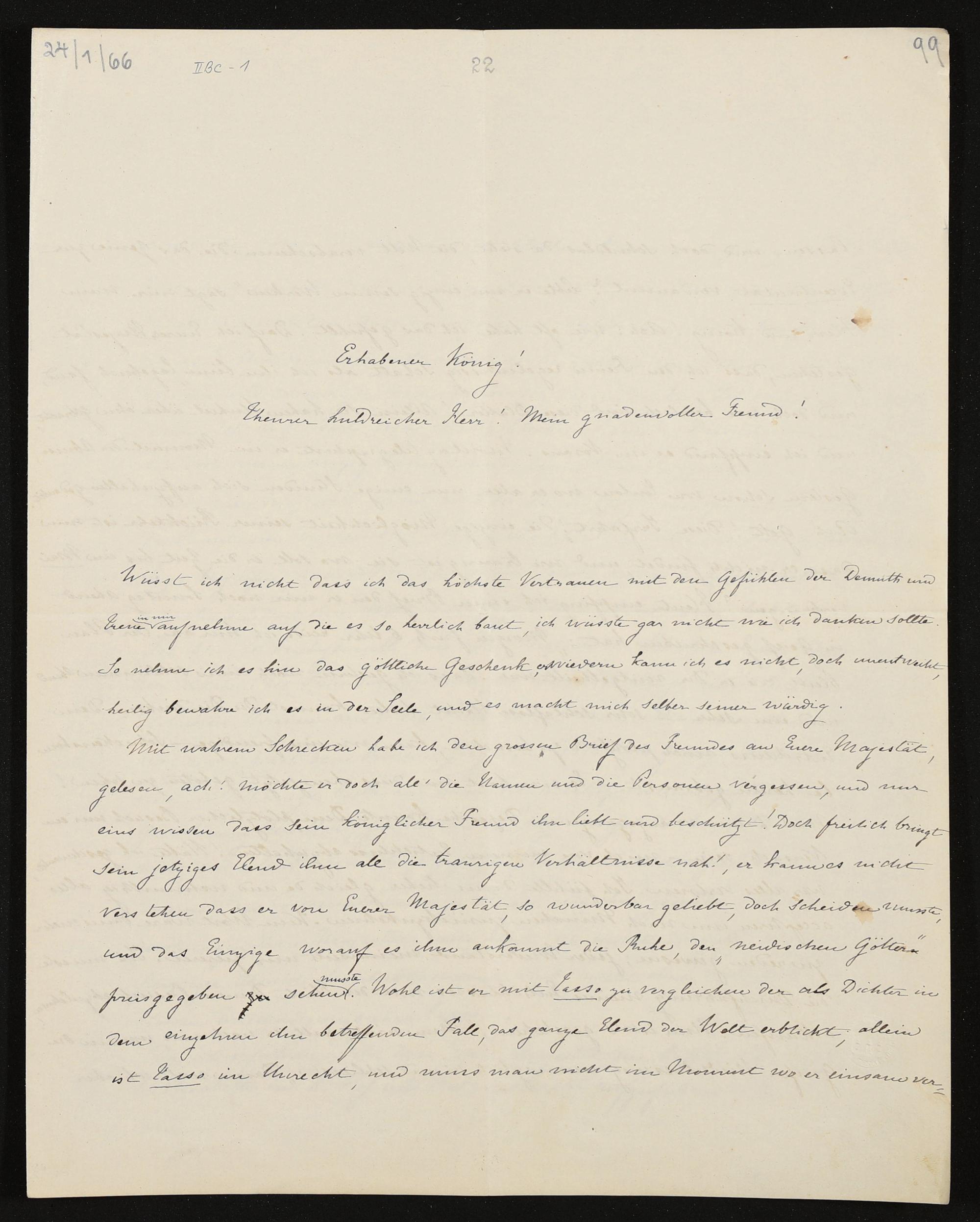 eigenhändiger Brief von Cosima Wagner an König Ludwig II. von Bayern