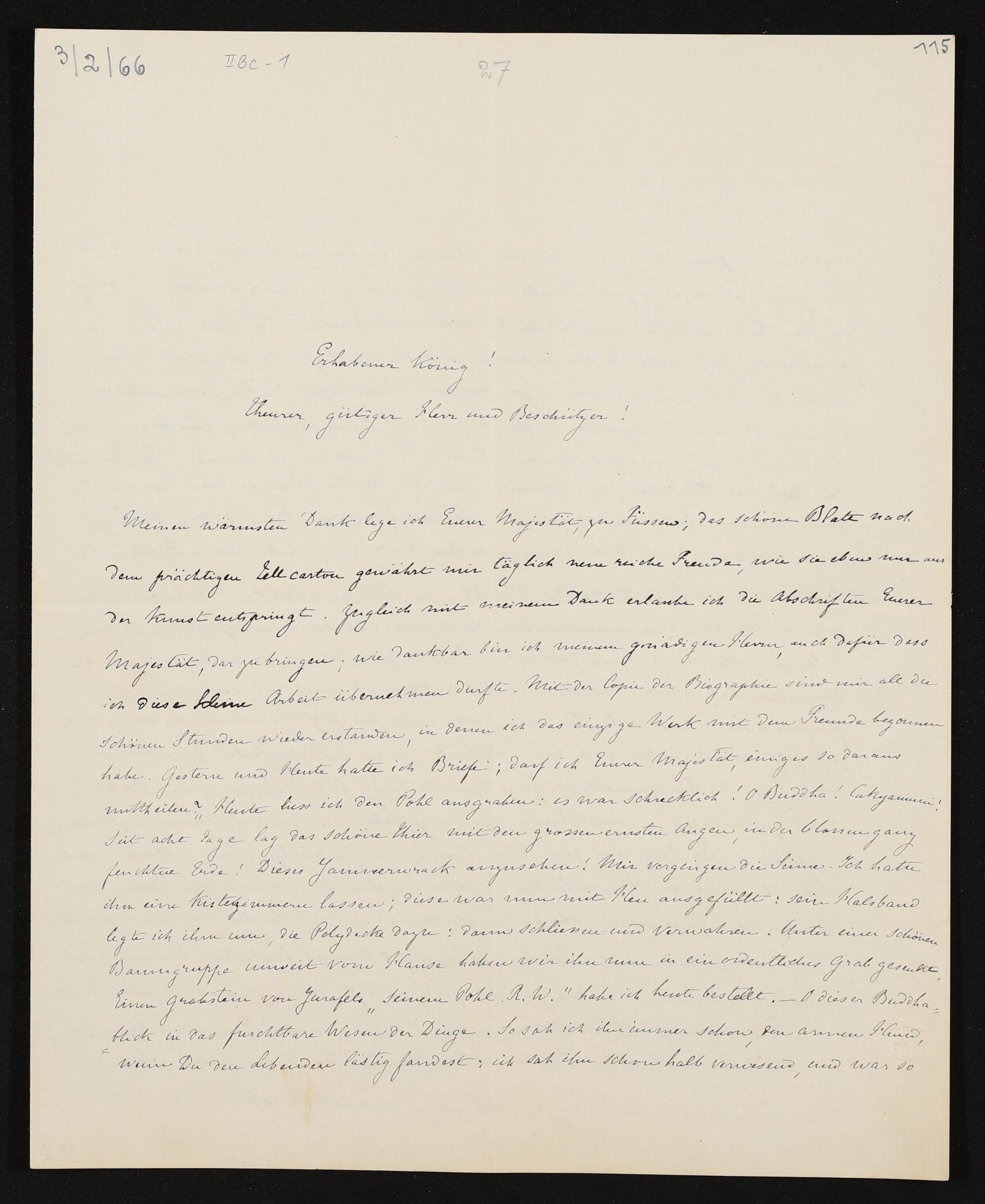 eigenhändiger Brief von Cosima Wagner an König Ludwig II. von Bayern