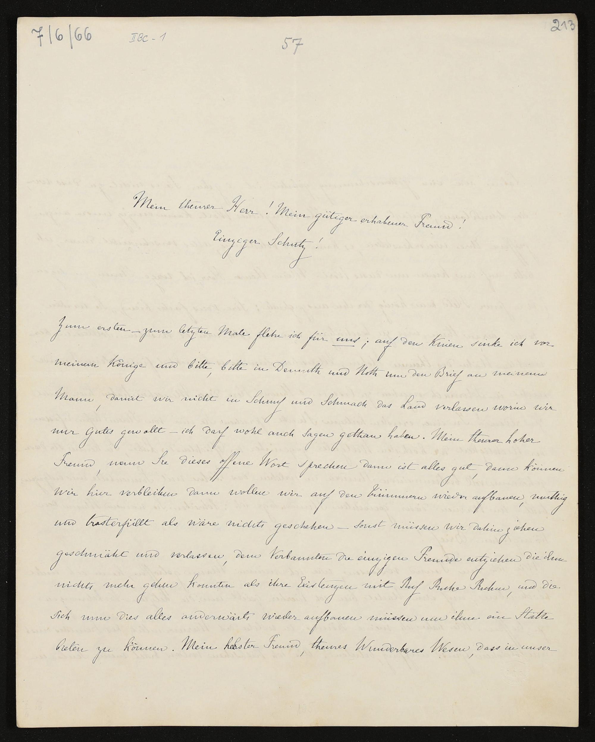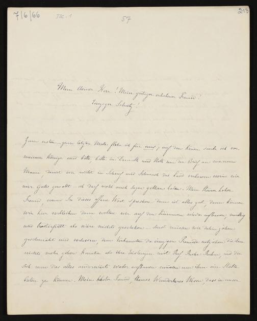 eigenhändiger Brief von Cosima Wagner an König Ludwig II. von Bayern