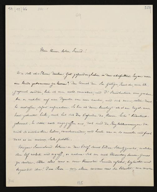 eigenhändiger Brief von Cosima Wagner an König Ludwig II. von Bayern