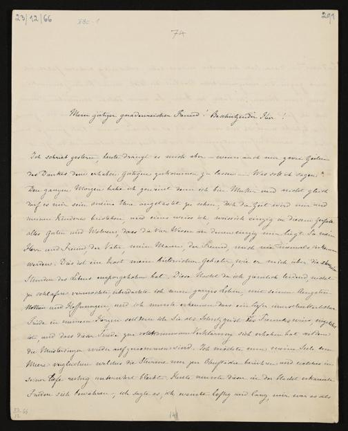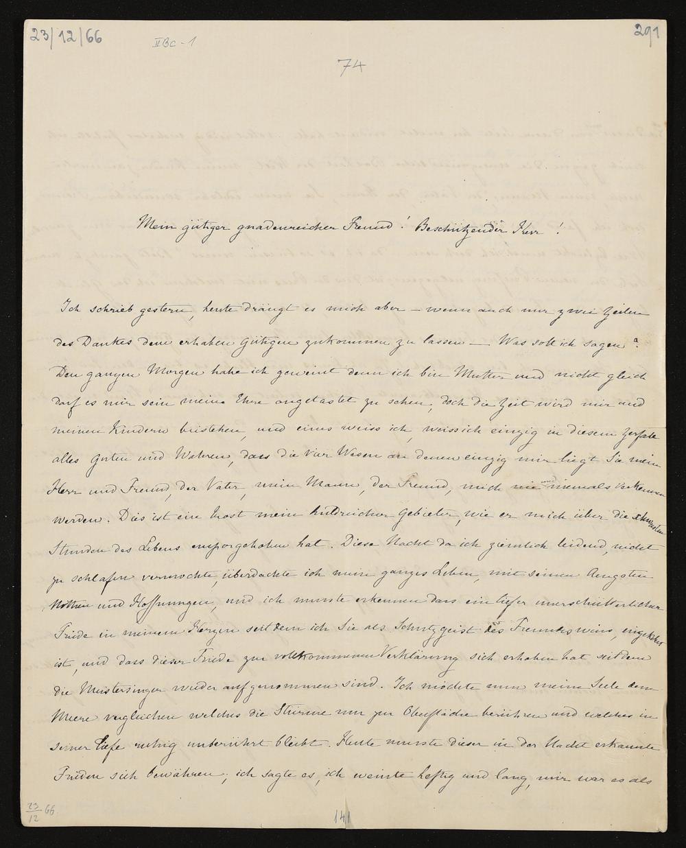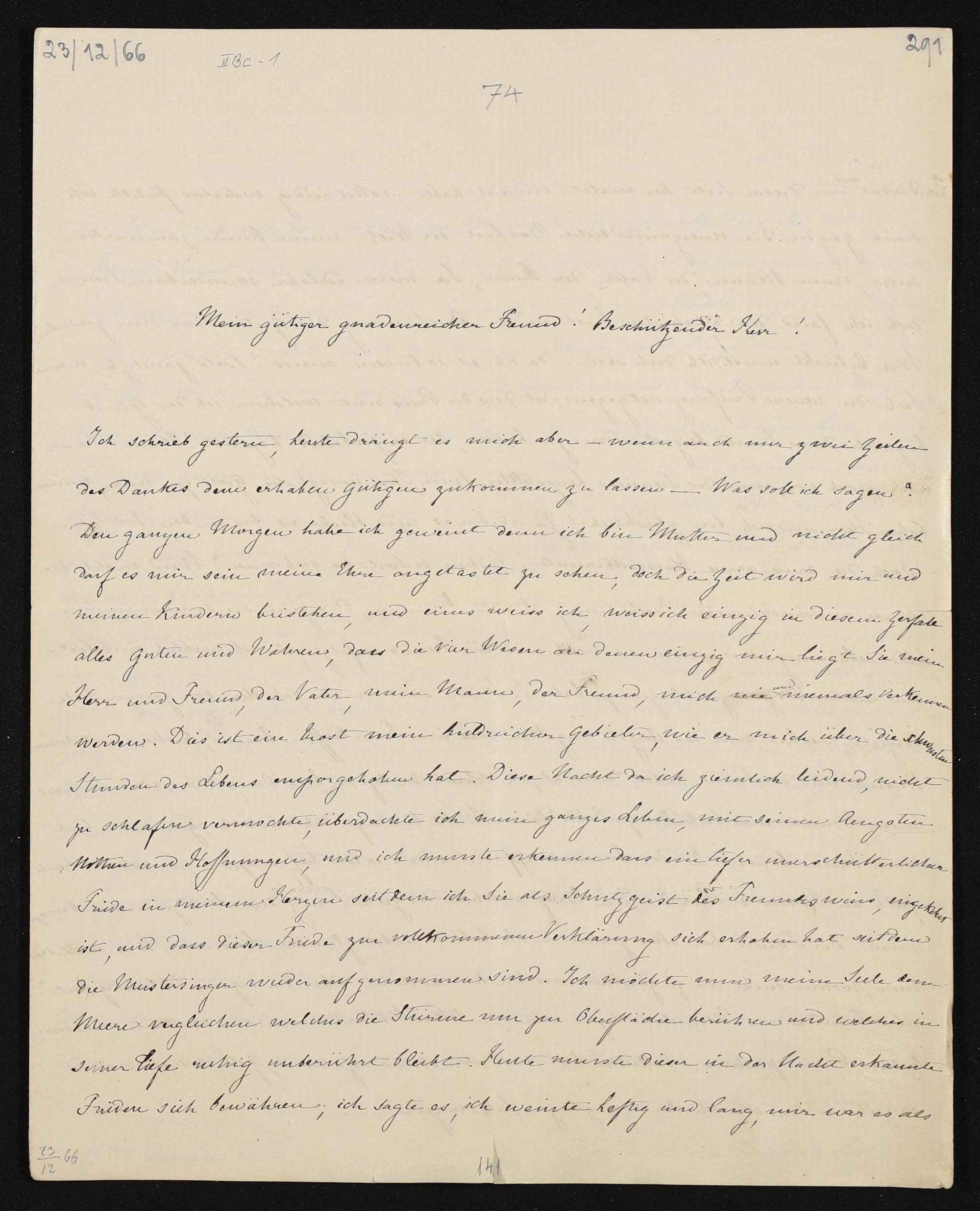 eigenhändiger Brief von Cosima Wagner an König Ludwig II. von Bayern