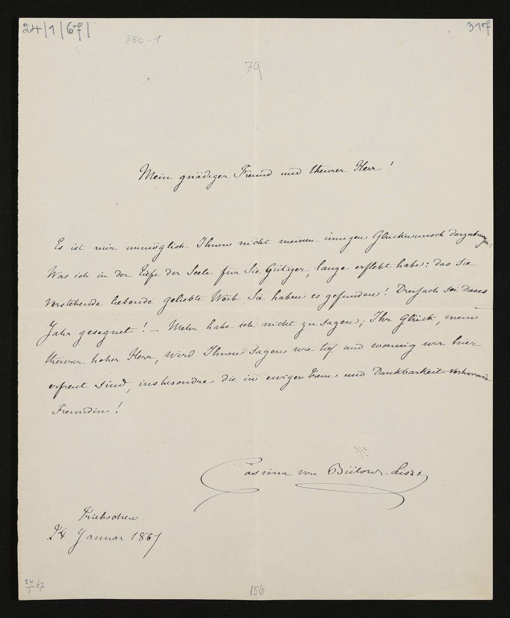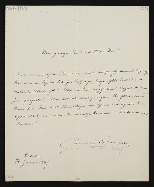 eigenhändiger Brief von Cosima Wagner an König Ludwig II. von Bayern