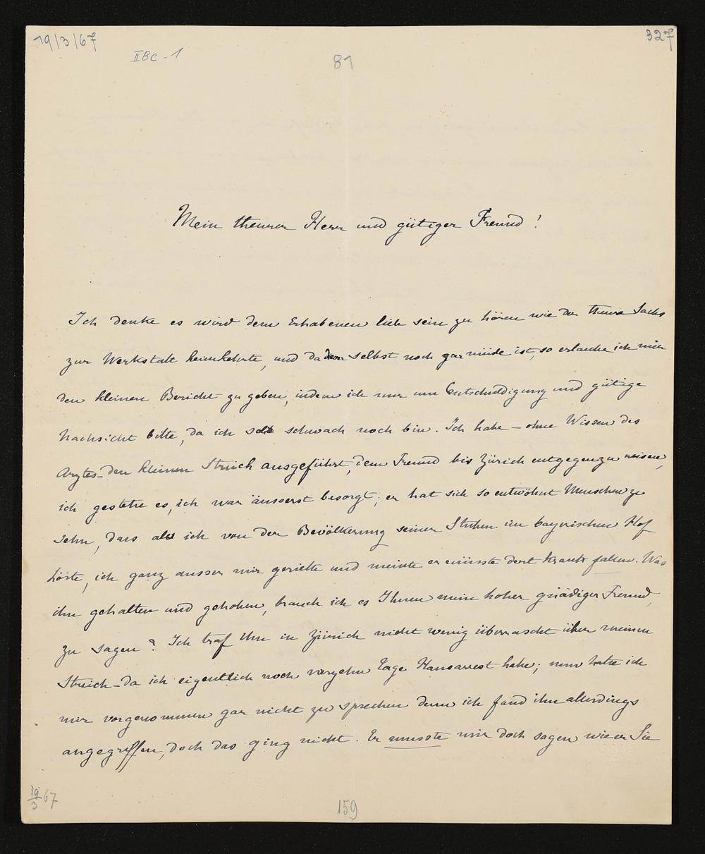 eigenhändiger Brief von Cosima Wagner an König Ludwig II. von Bayern