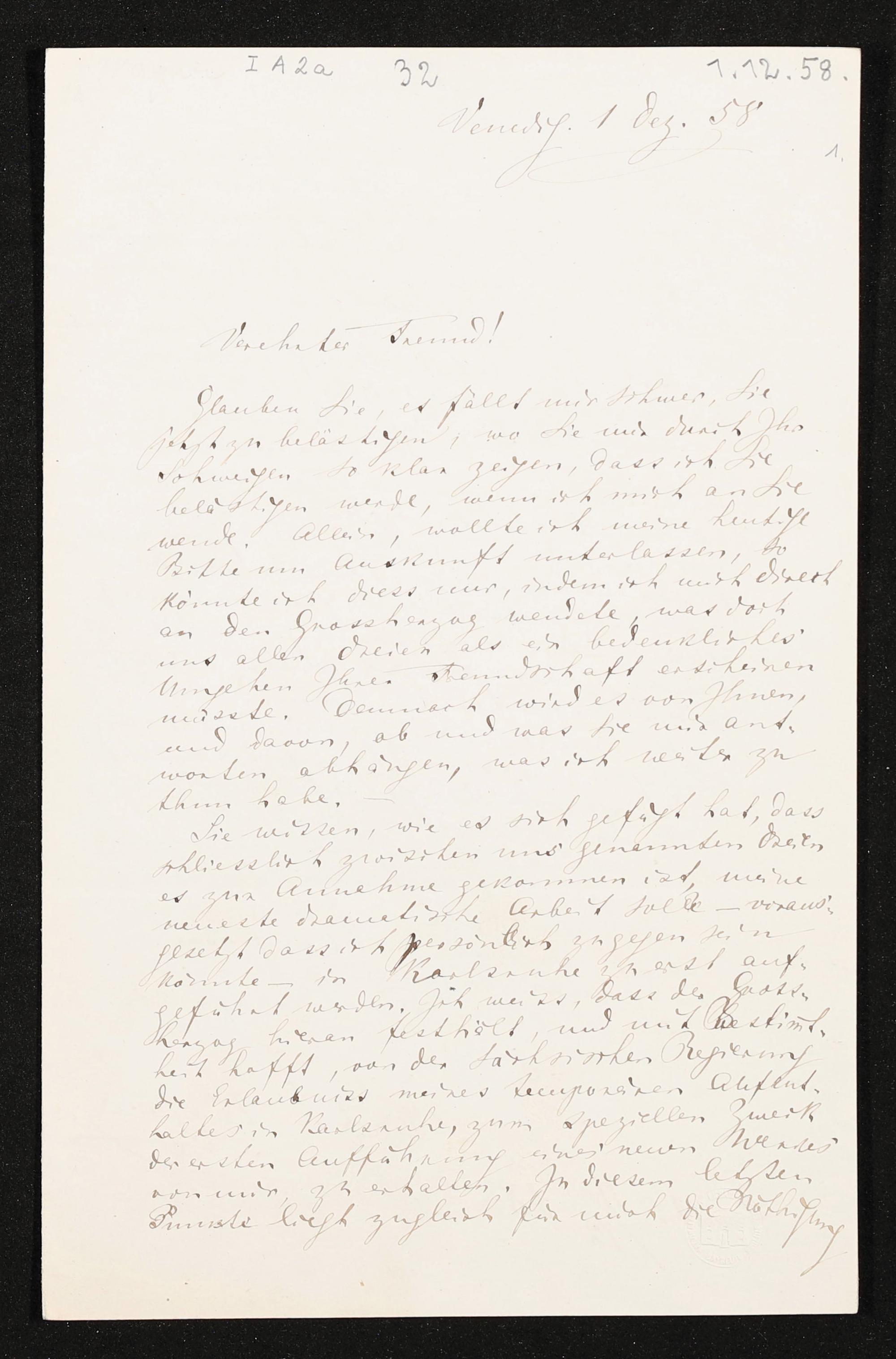 eigenhändiger Brief von Richard Wagner an Eduard Devrient