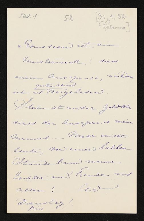 eigenhändiger Brief von Cosima Wagner an Heinrich Freiherr von Stein