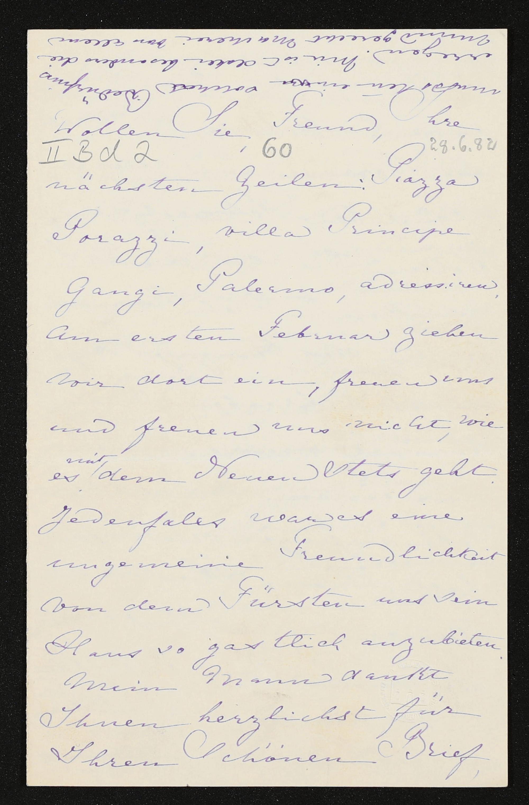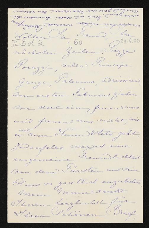 eigenhändiger Brief von Cosima Wagner an Heinrich Freiherr von Stein