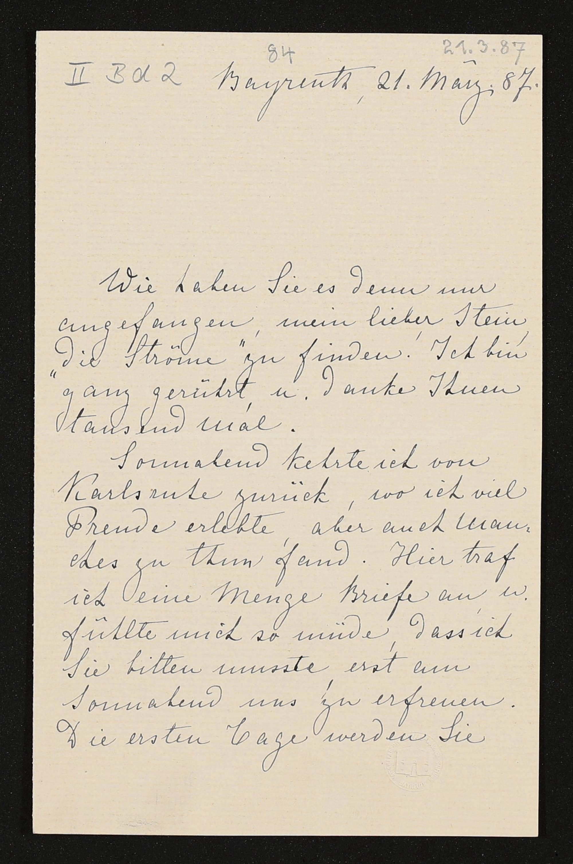 eigenhändiger Brief von Cosima Wagner an Heinrich Freiherr von Stein
