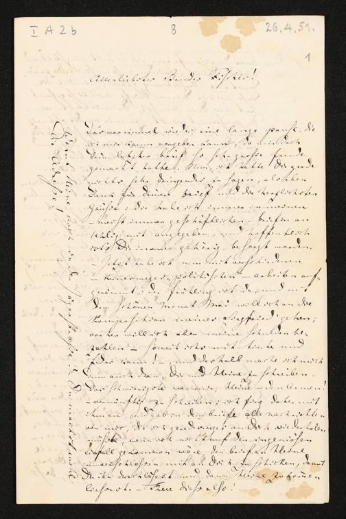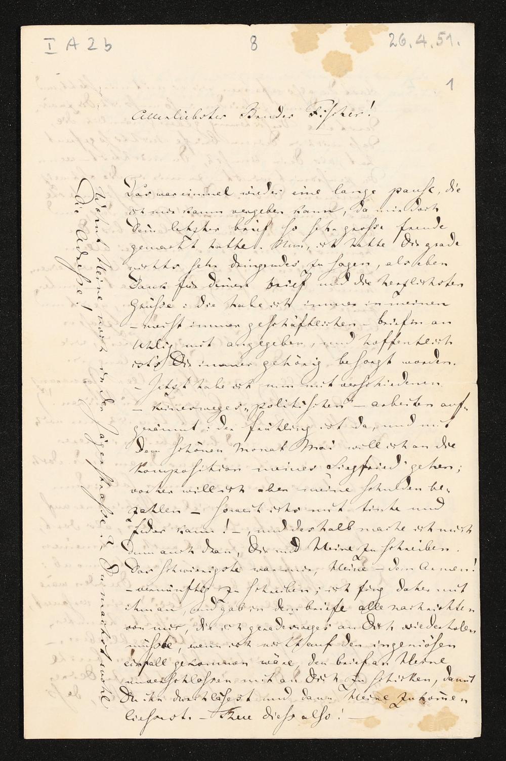 eigenhändiger Brief von Richard Wagner an Wilhelm Fischer
