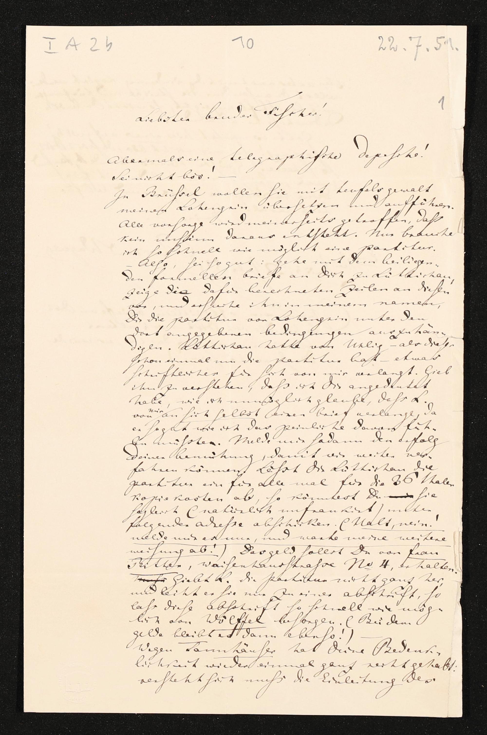 eigenhändiger Brief von Richard Wagner an Wilhelm Fischer