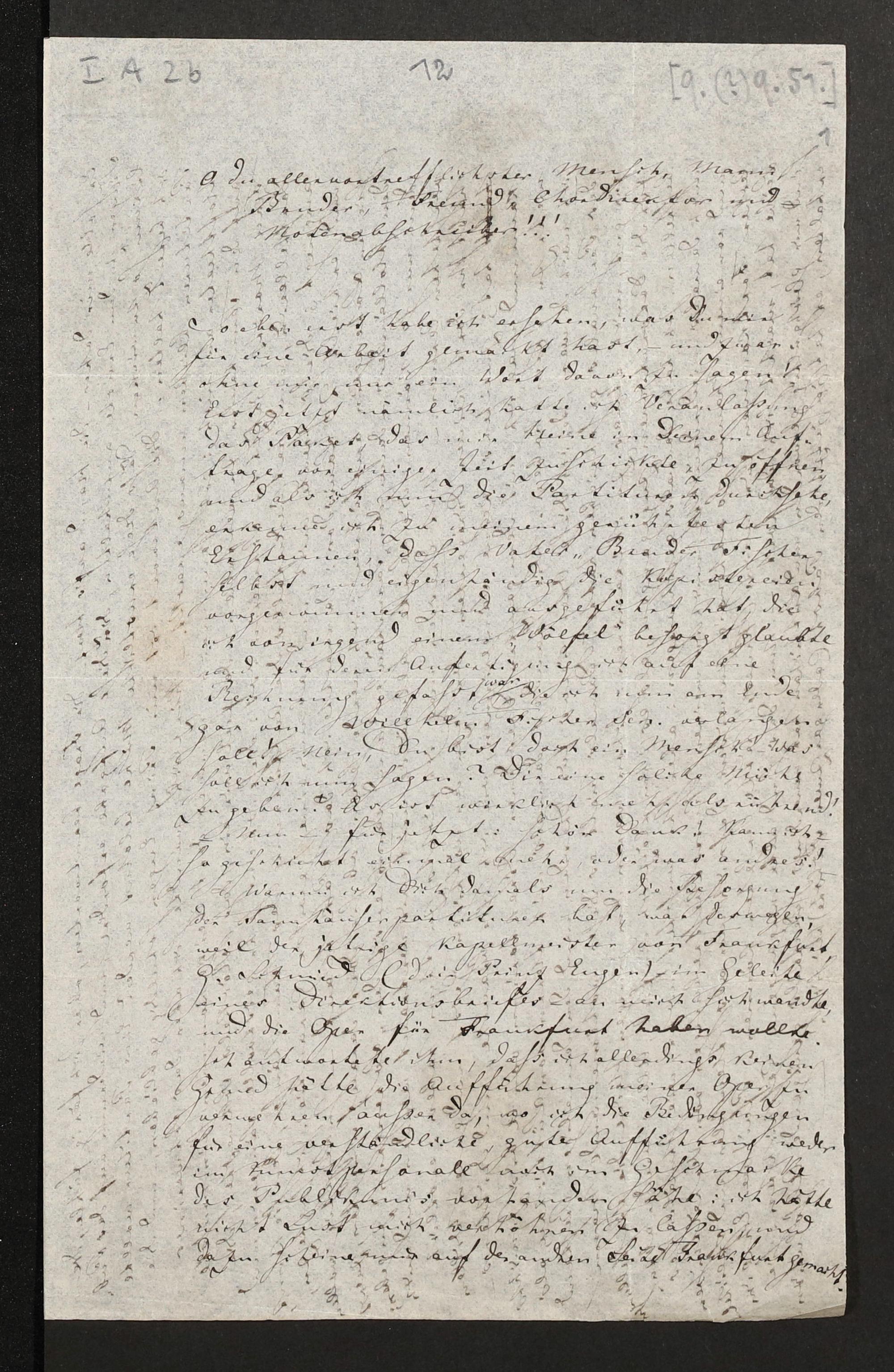 eigenhändiger Brief von Richard Wagner an Wilhelm Fischer