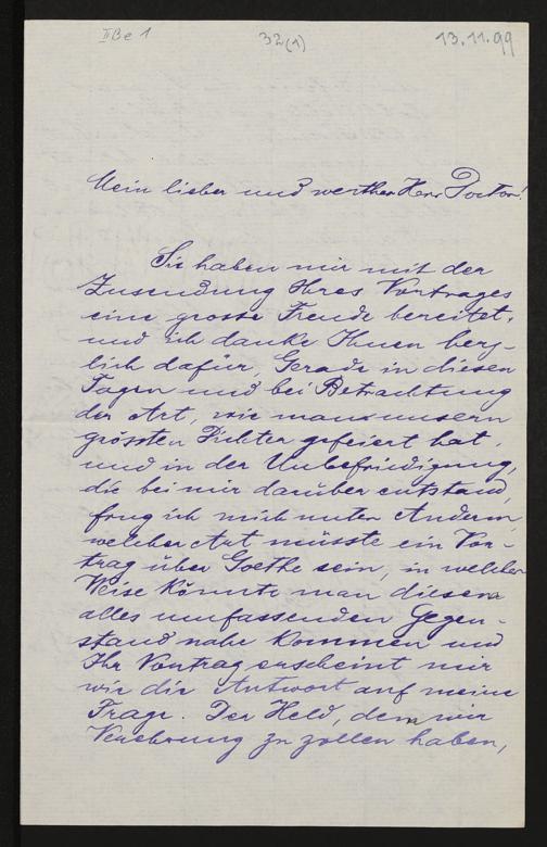 eigenhändiger Brief von Cosima Wagner an Wolfgang Golther