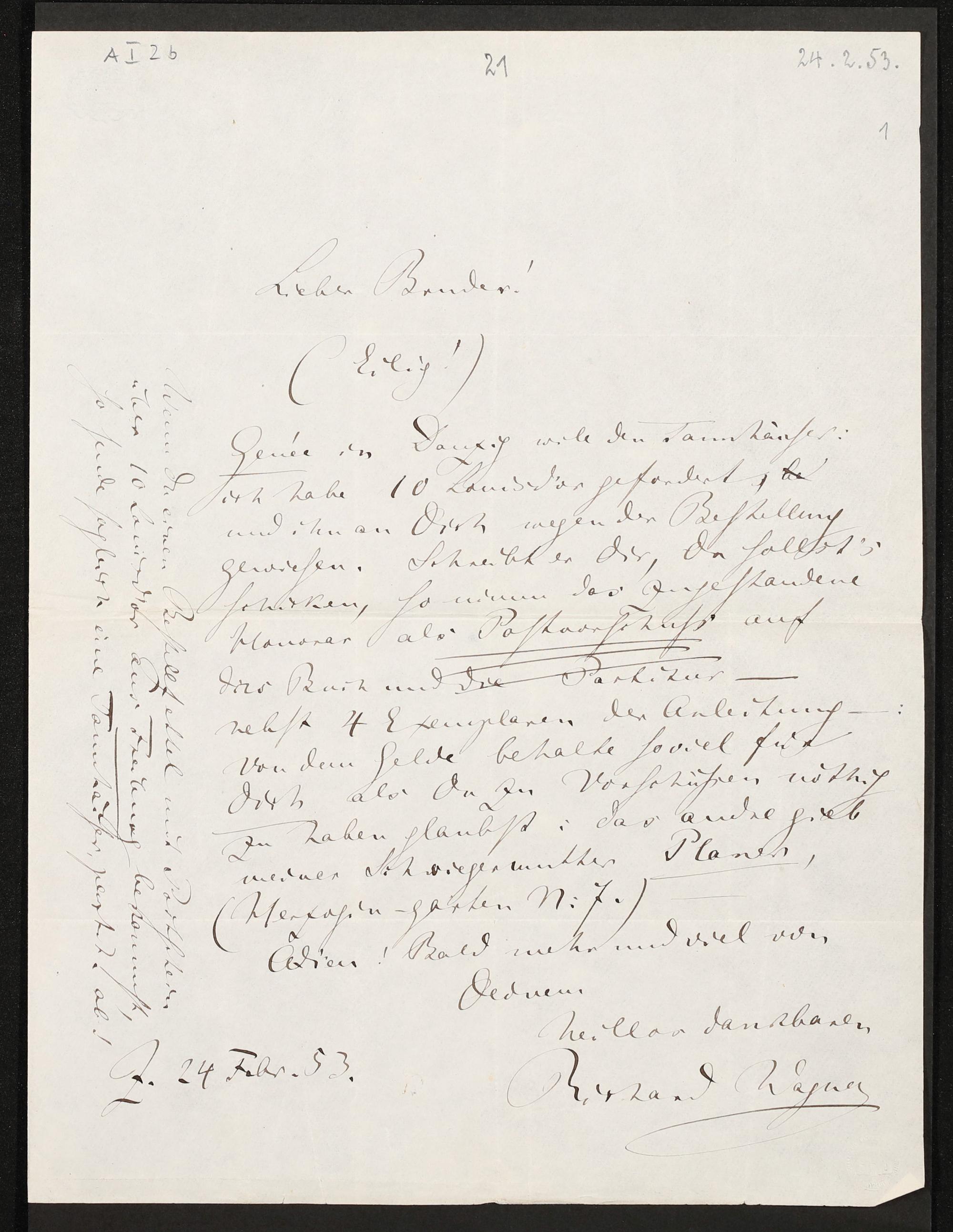 eigenhändiger Brief von Richard Wagner an Wilhelm Fischer