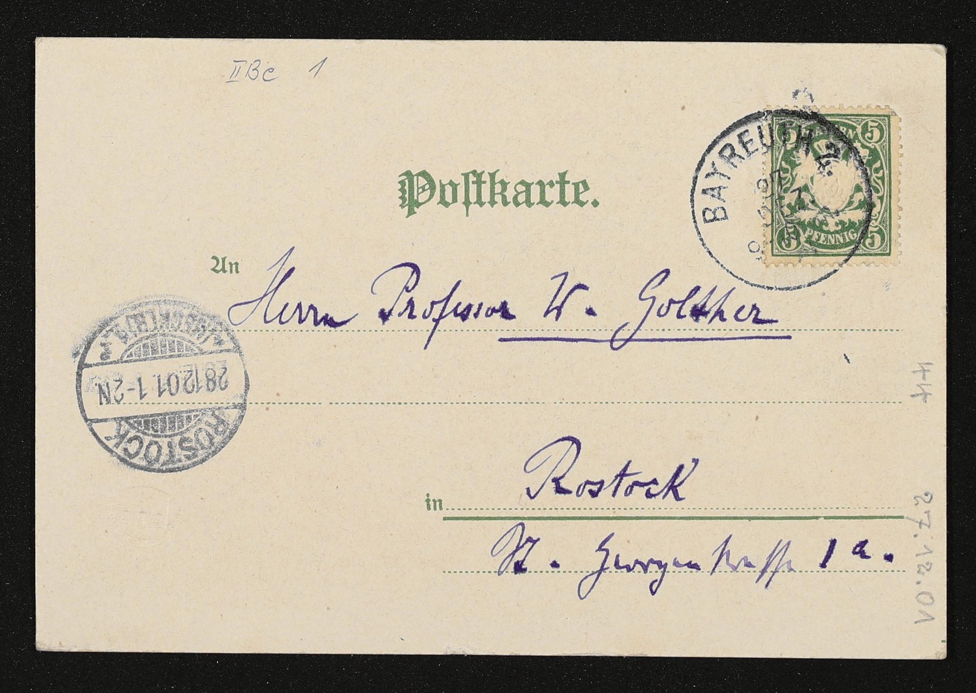 eigenhändige Postkarte von Cosima Wagner an Wolfgang Golther
