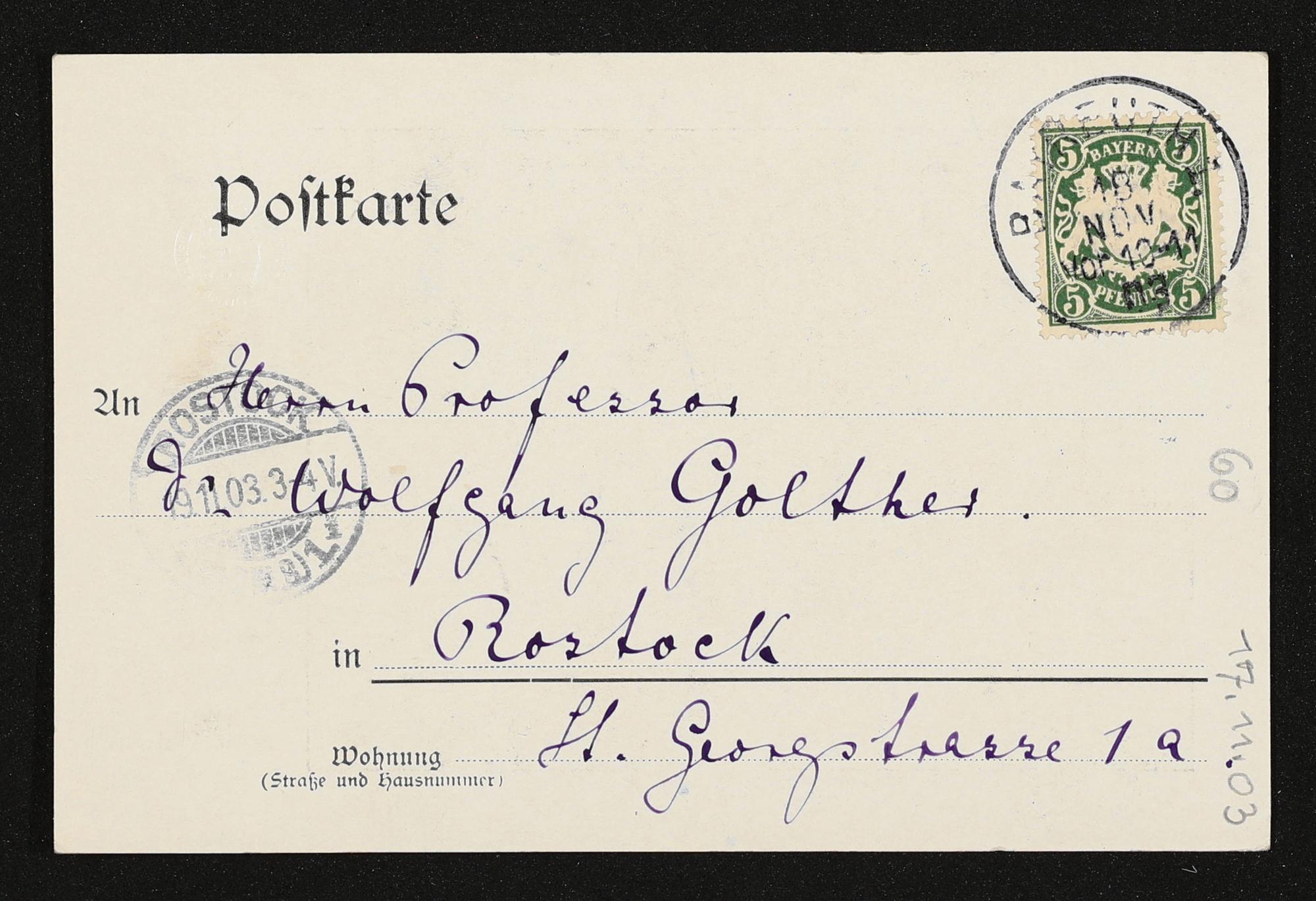 eigenhändige Postkarte von Cosima Wagner an Wolfgang Golther