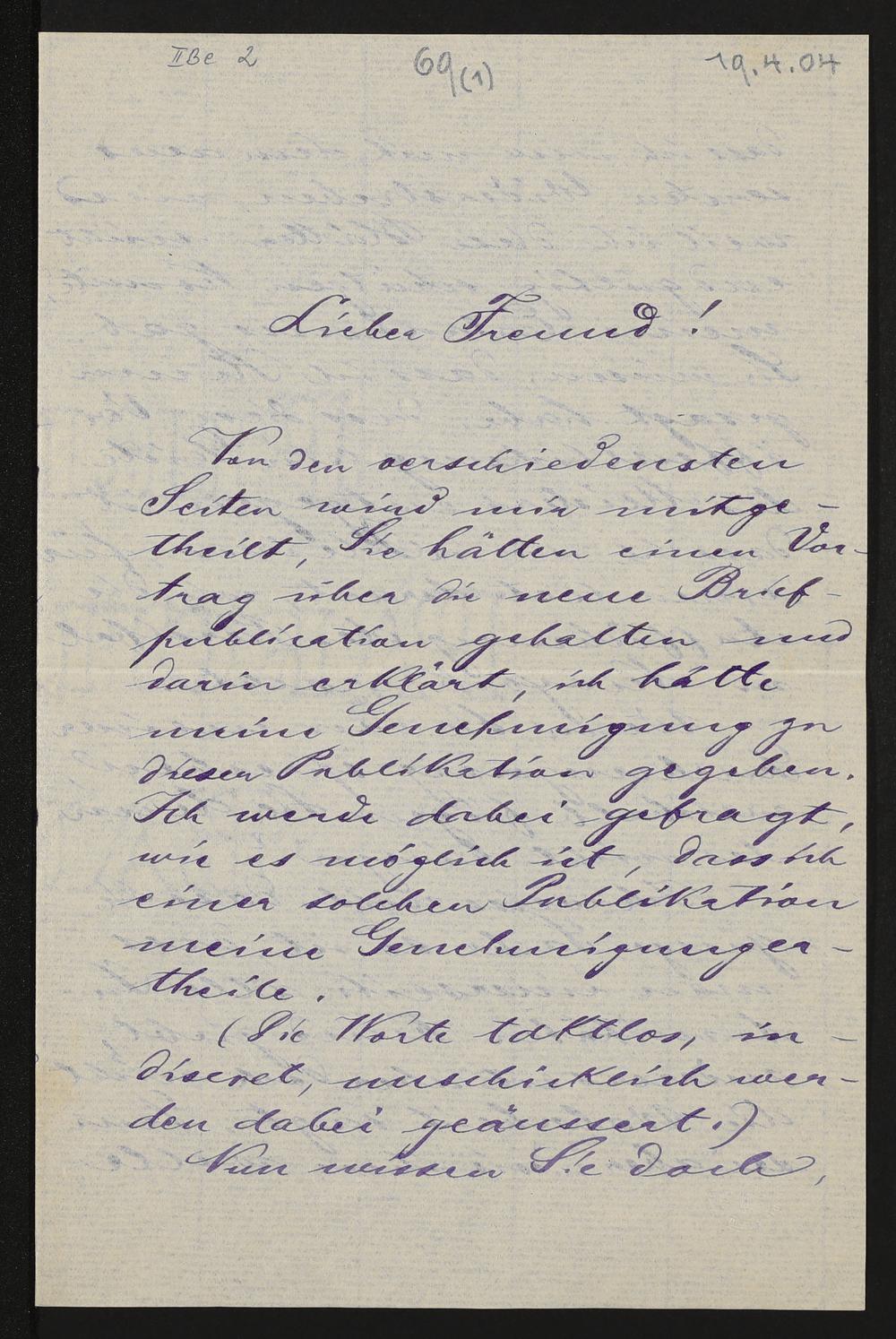 eigenhändiger Brief von Cosima Wagner an Wolfgang Golther