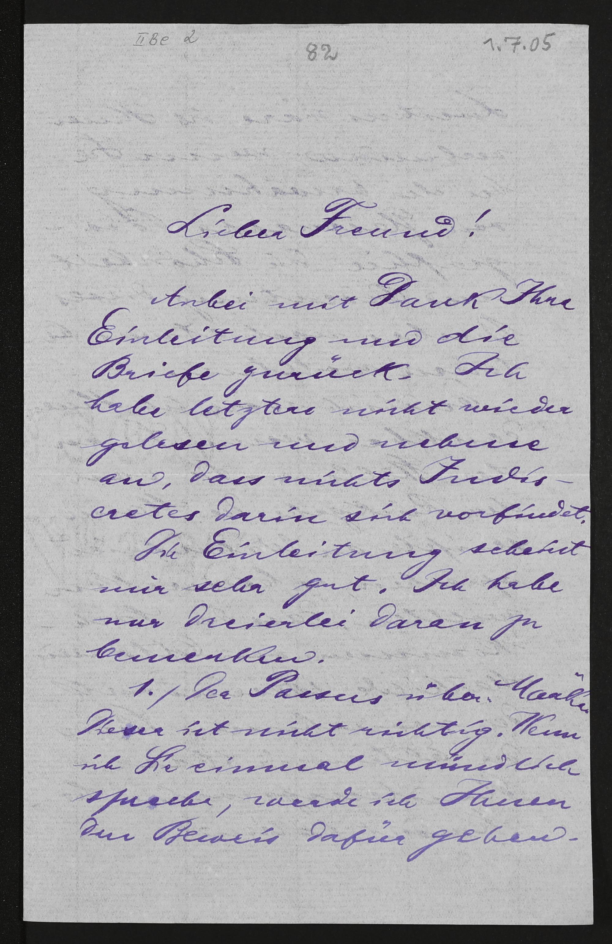 eigenhändiger Brief von Cosima Wagner an Wolfgang Golther