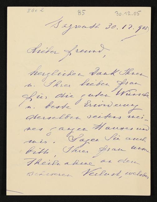 eigenhändiger Brief von Cosima Wagner an Wolfgang Golther