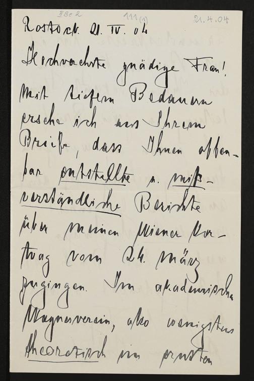 eigenhändiger Brief von Wolfgang Golther an Cosima Wagner