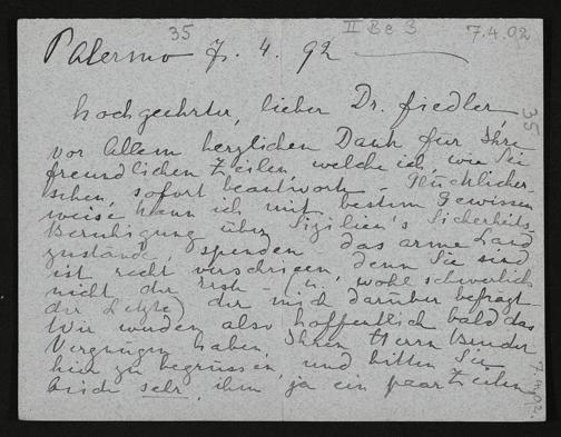 eigenhändiger Brief von Cosima Wagner an Conrad Fiedler