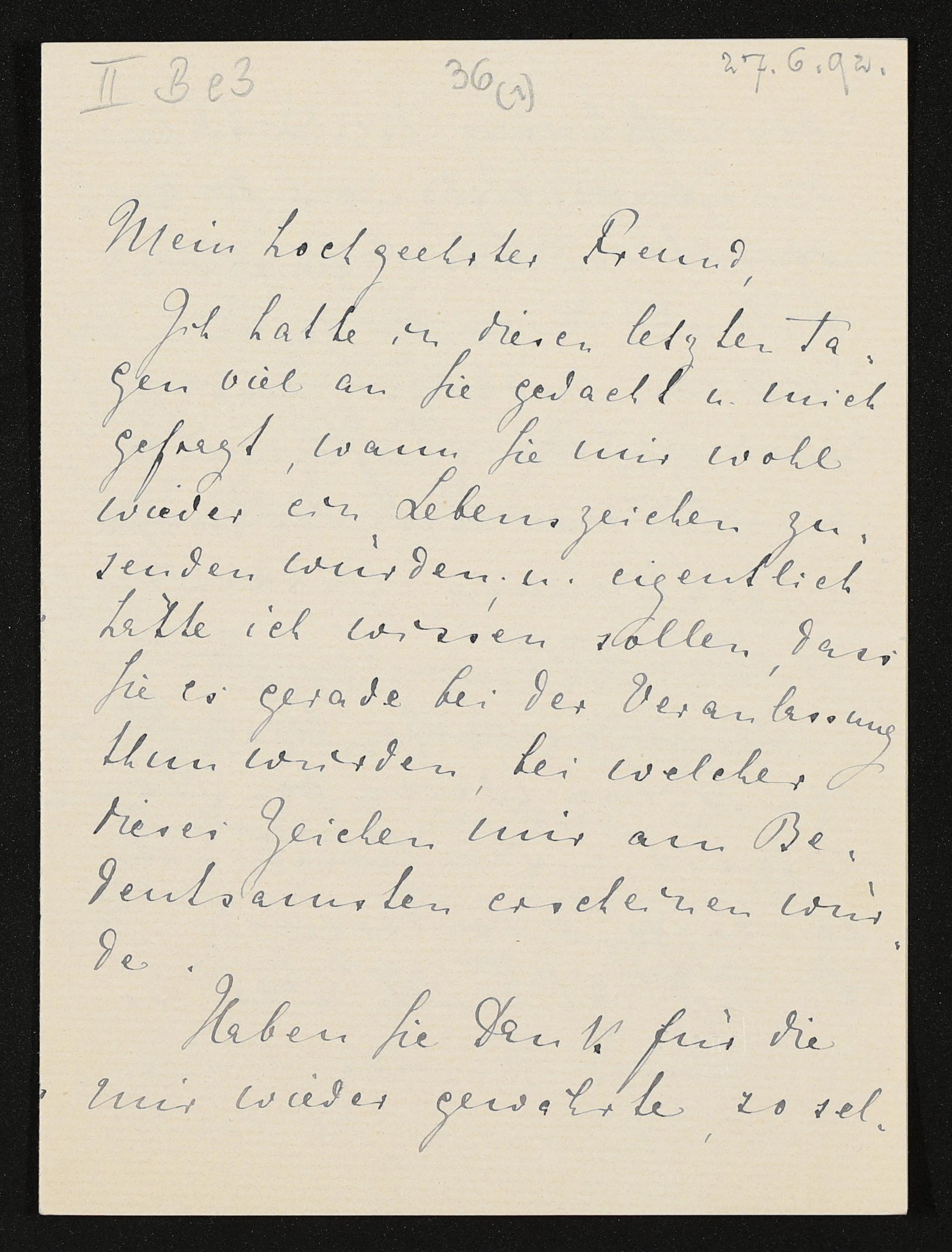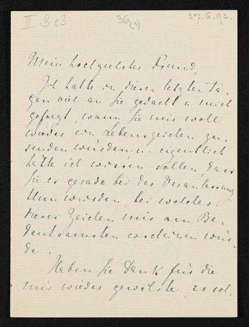 eigenhändiger Brief von Eva Wagner an Conrad Fiedler