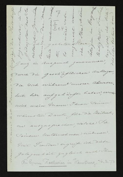 eigenhändiger Brief von Cosima Wagner an A. Zacharias