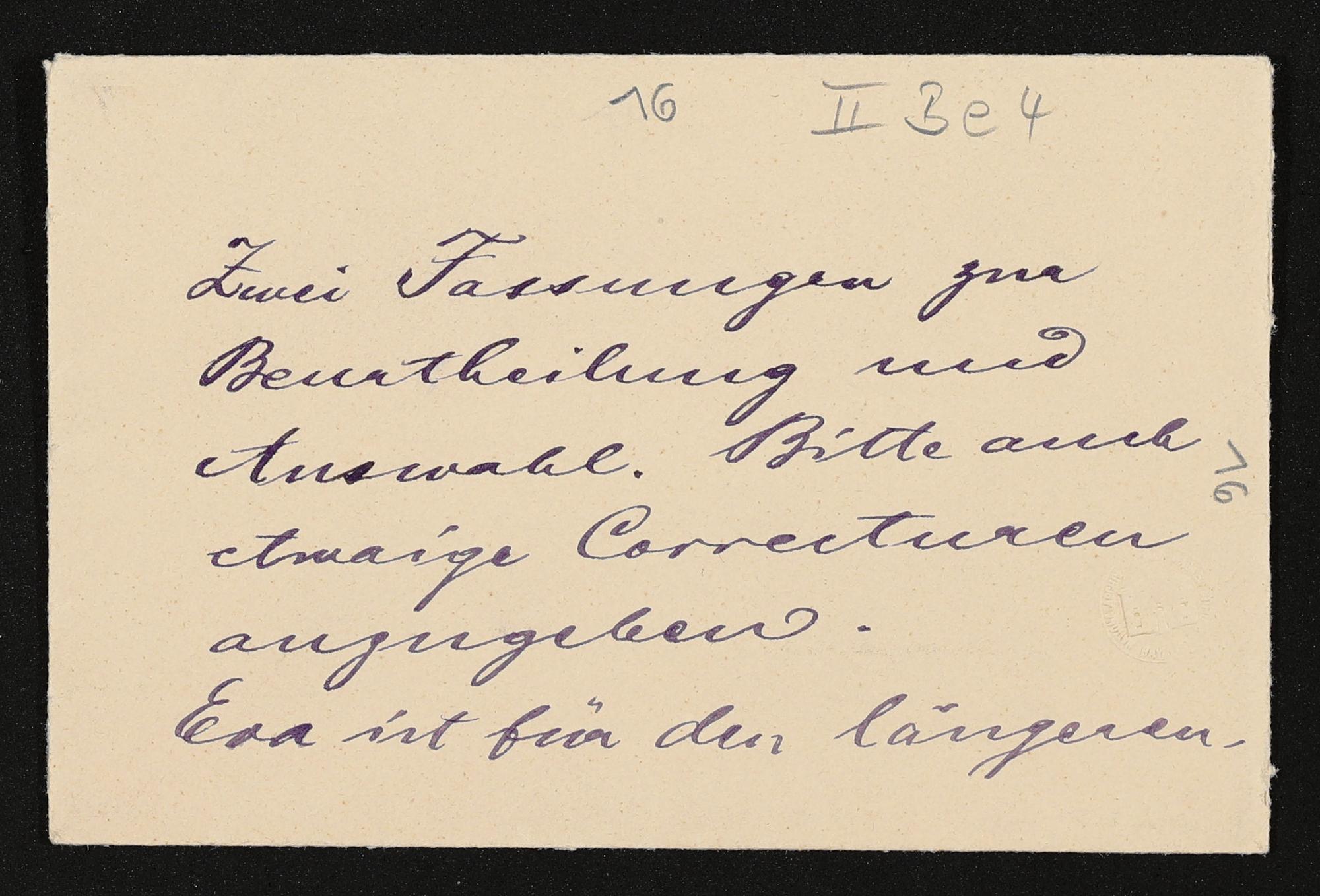 unvollständiger, eigenhändiger Brief von Cosima Wagner an einen unbekannten Empfänger