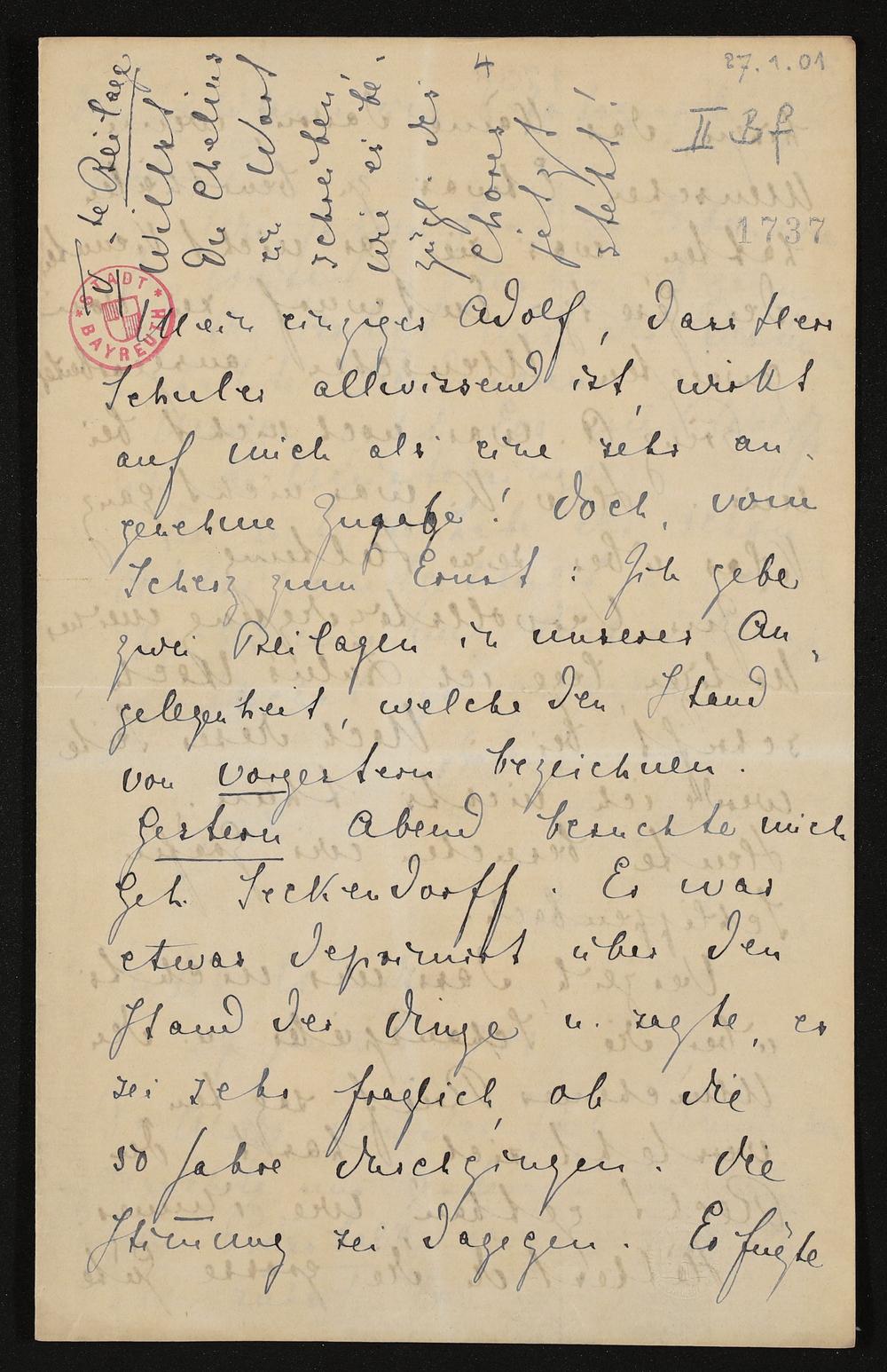 eigenhändiger Brief von Cosima Wagner an Adolf von Gross