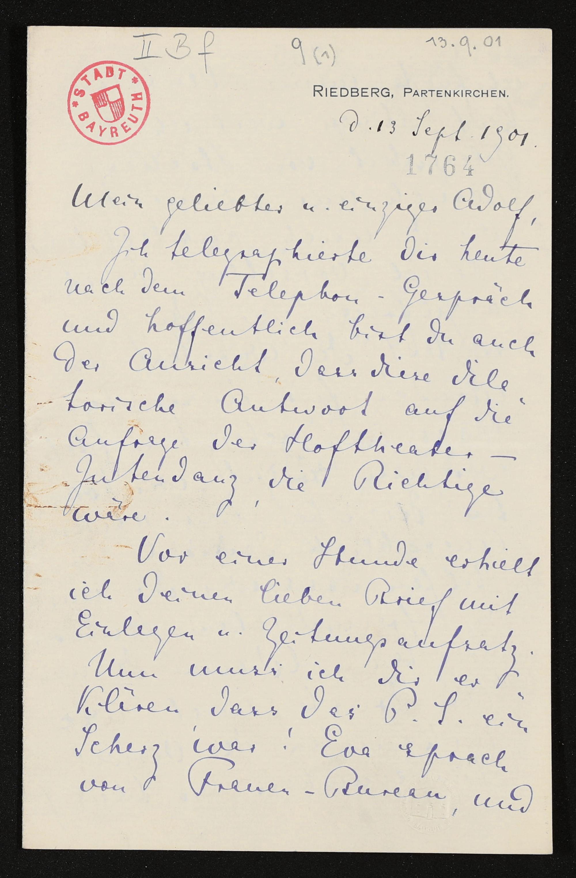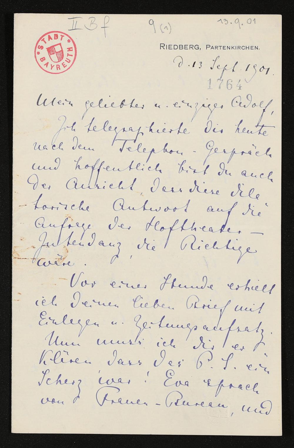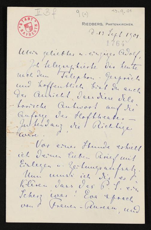 eigenhändiger Brief von Cosima Wagner an Adolf von Gross