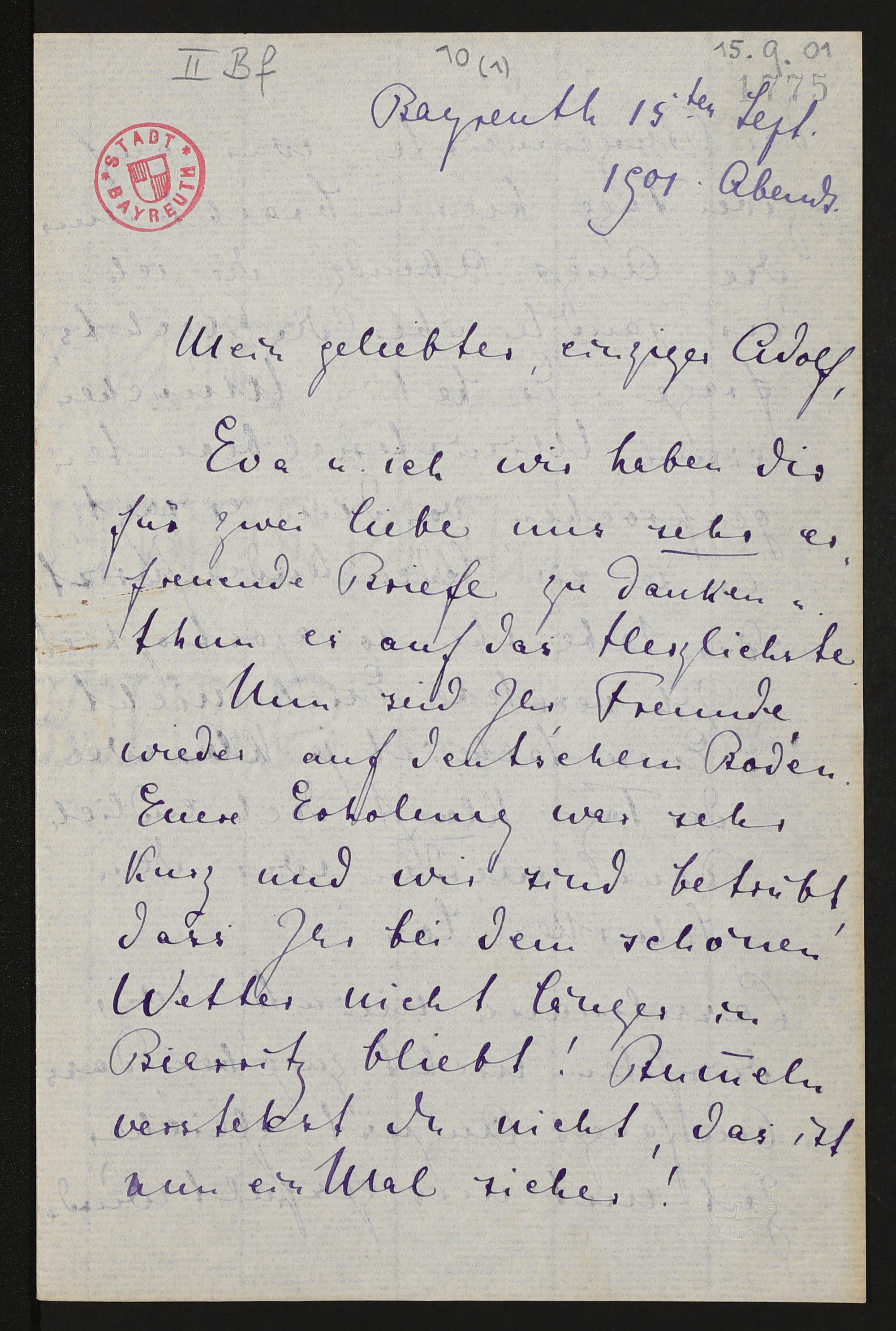 eigenhändiger Brief von Cosima Wagner an Adolf von Gross