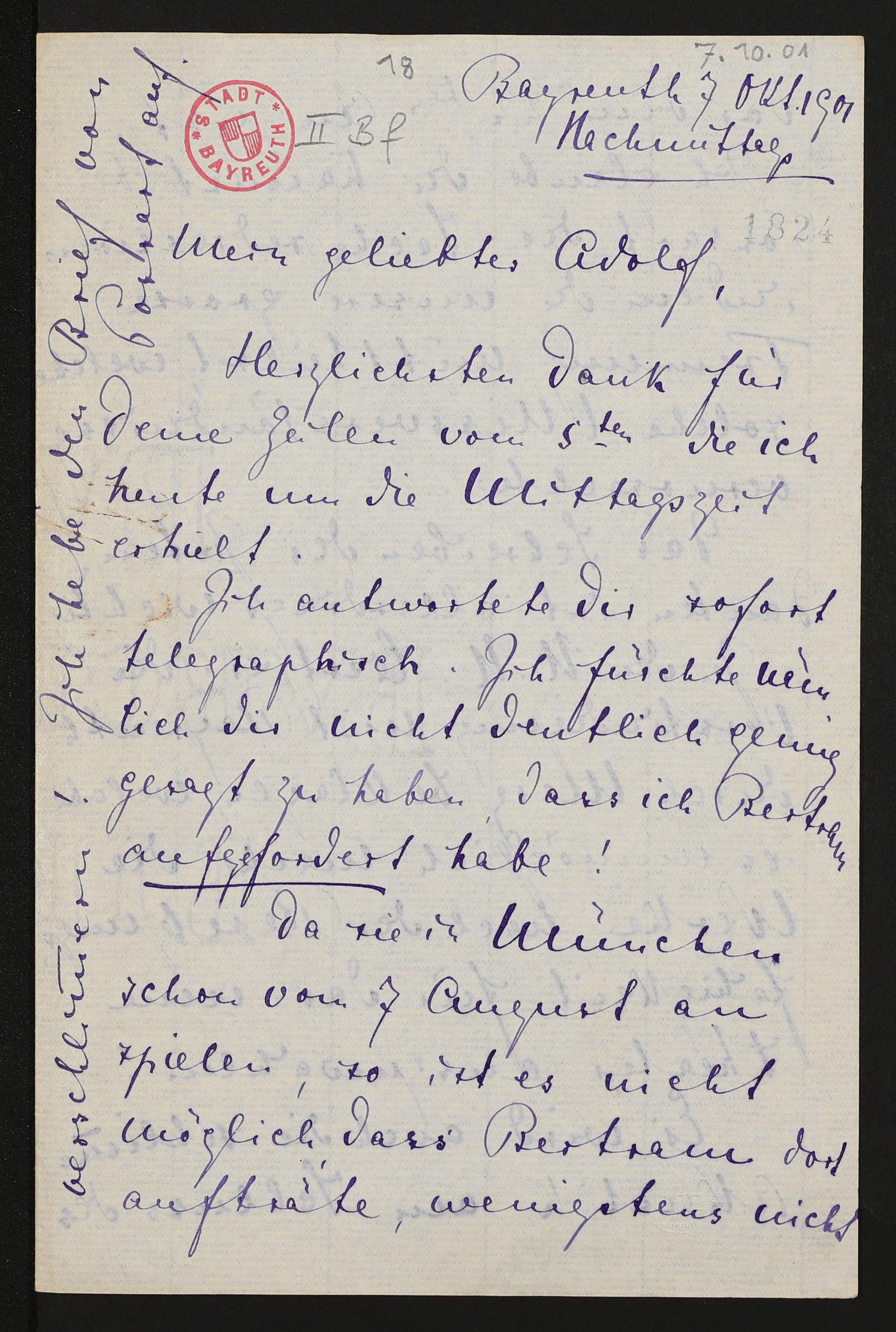 eigenhändiger Brief von Cosima Wagner an Adolf von Gross