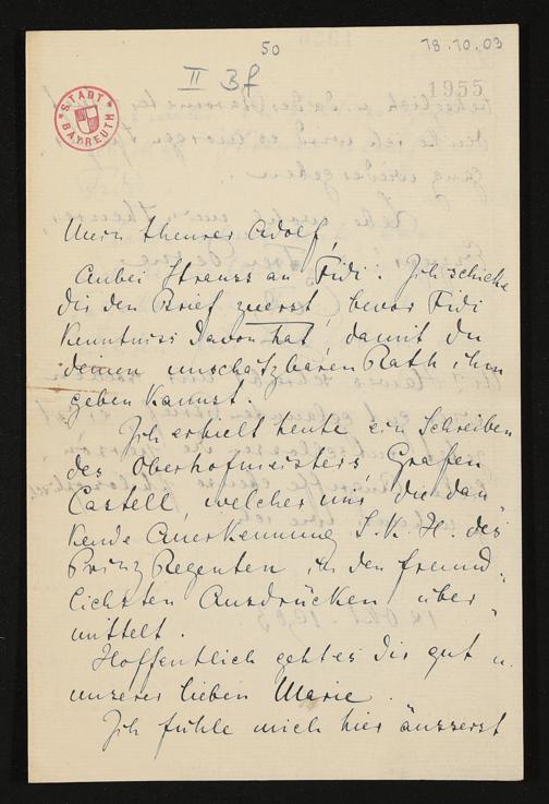 eigenhändiger Brief von Cosima Wagner an Adolf von Gross