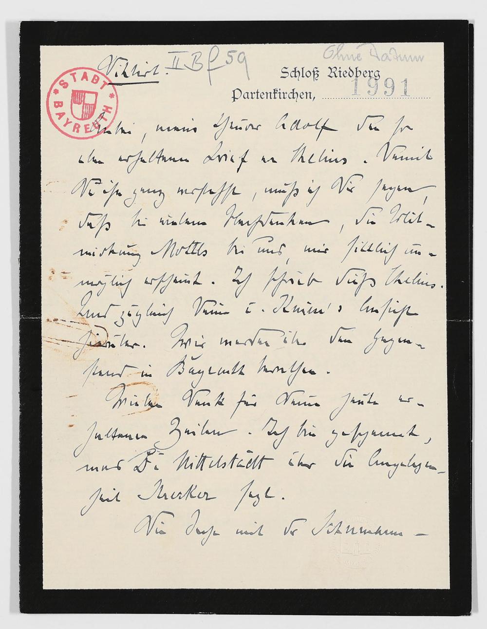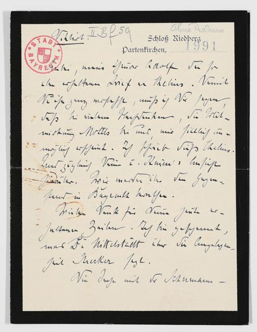 eigenhändiger Brief von Cosima Wagner an Adolf von Gross