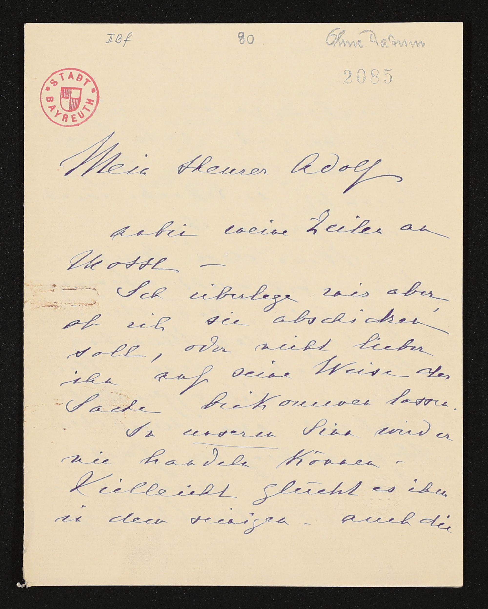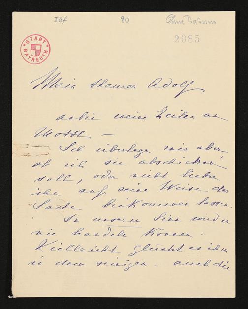 eigenhändiger Brief von Cosima Wagner an Adolf von Gross