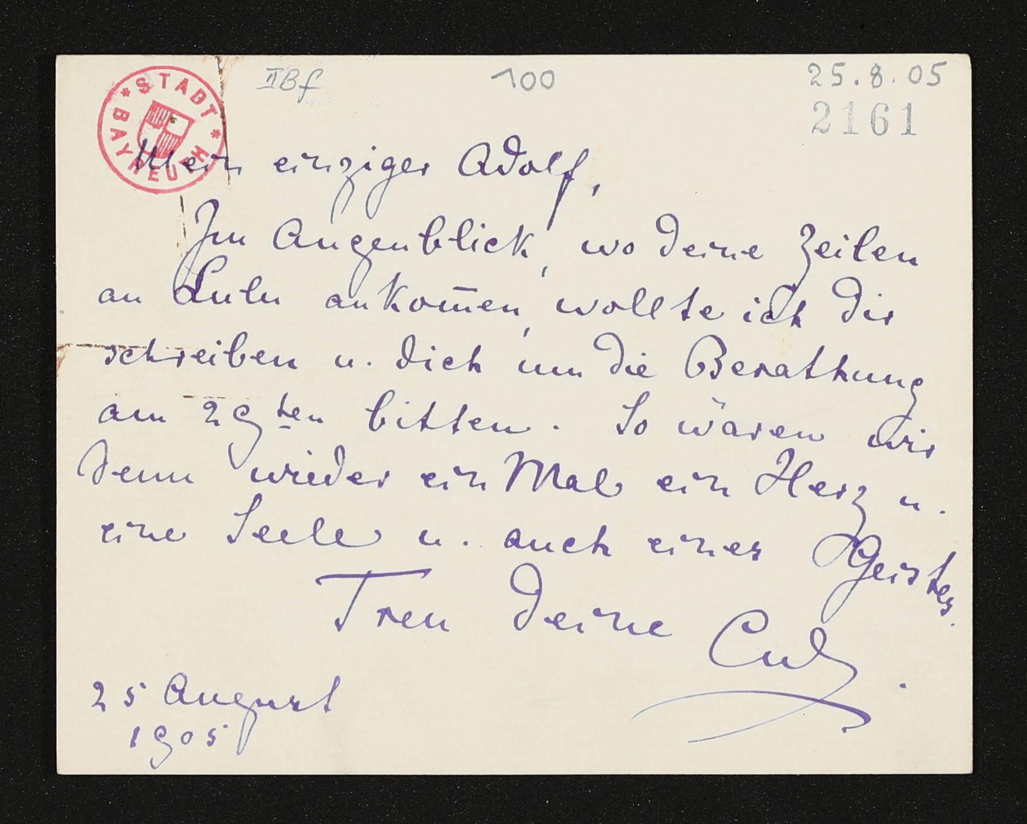 eigenhändiger Brief von Cosima Wagner an Adolf von Gross