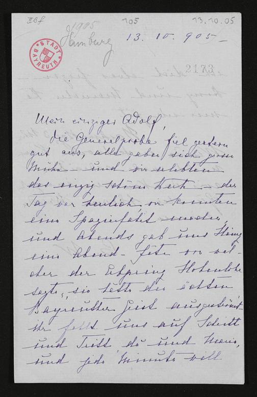 eigenhändiger Brief von Cosima Wagner an Adolf von Gross