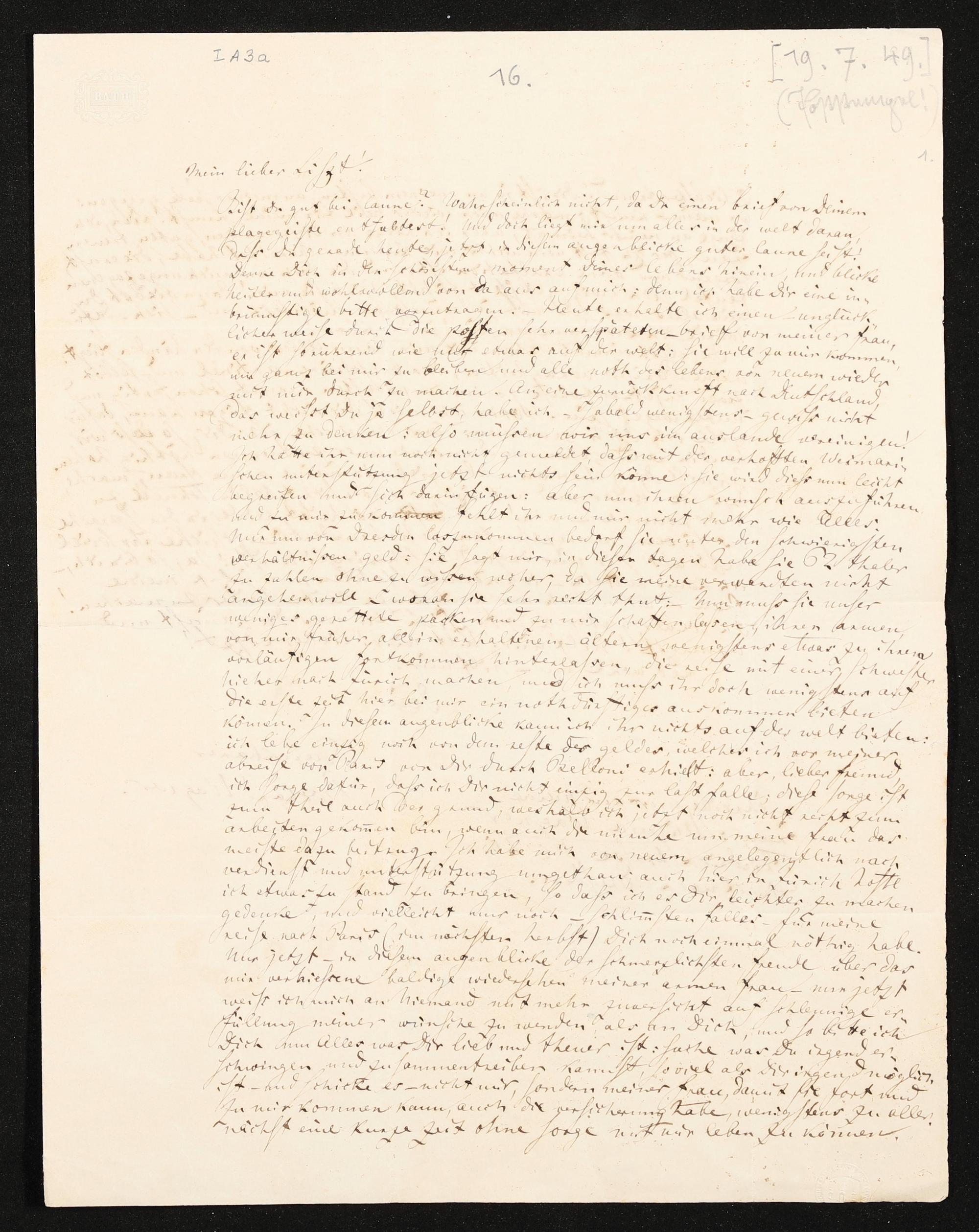 eigenhändiger Brief von Richard Wagner an Franz Liszt