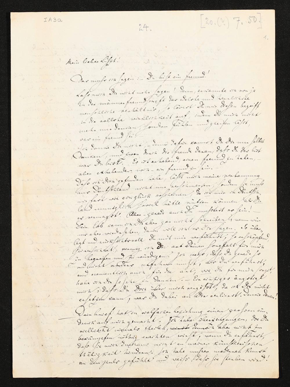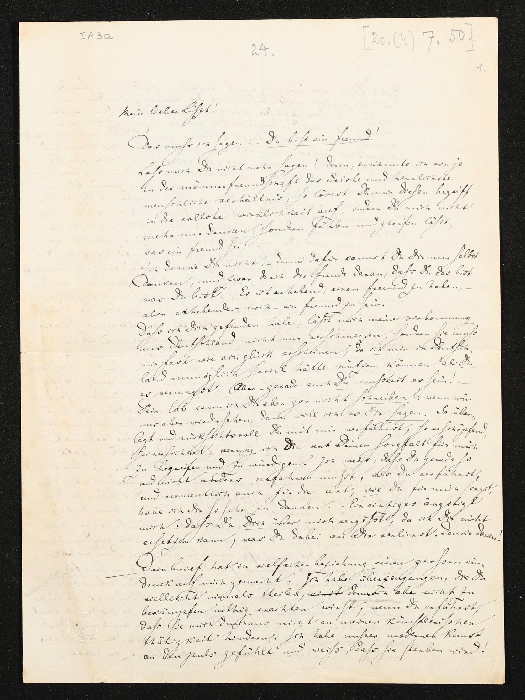 eigenhändiger Brief von Richard Wagner an Franz Liszt