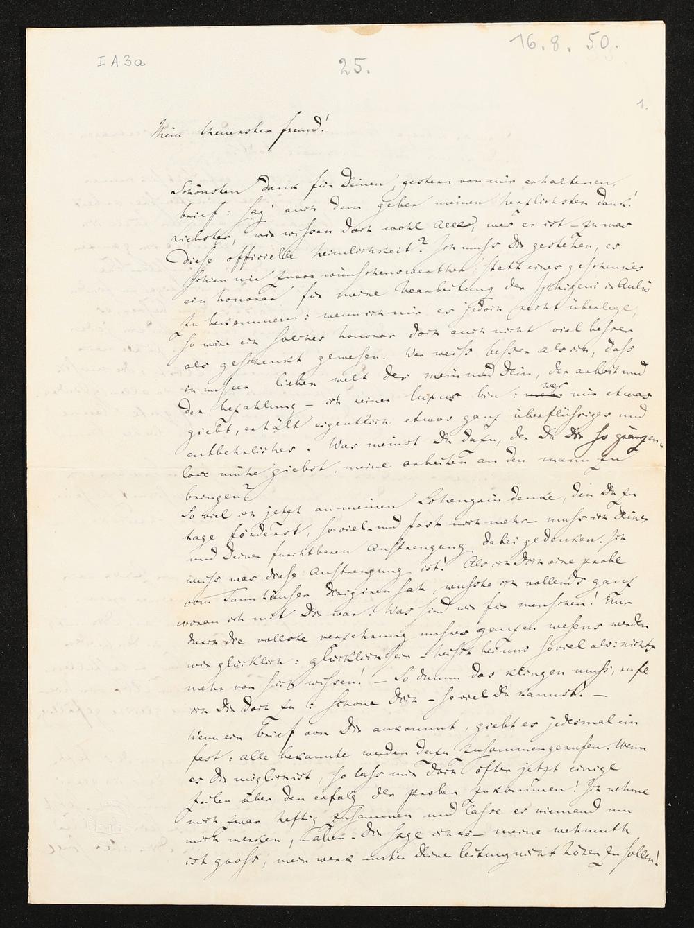eigenhändiger Brief von Richard Wagner an Franz Liszt