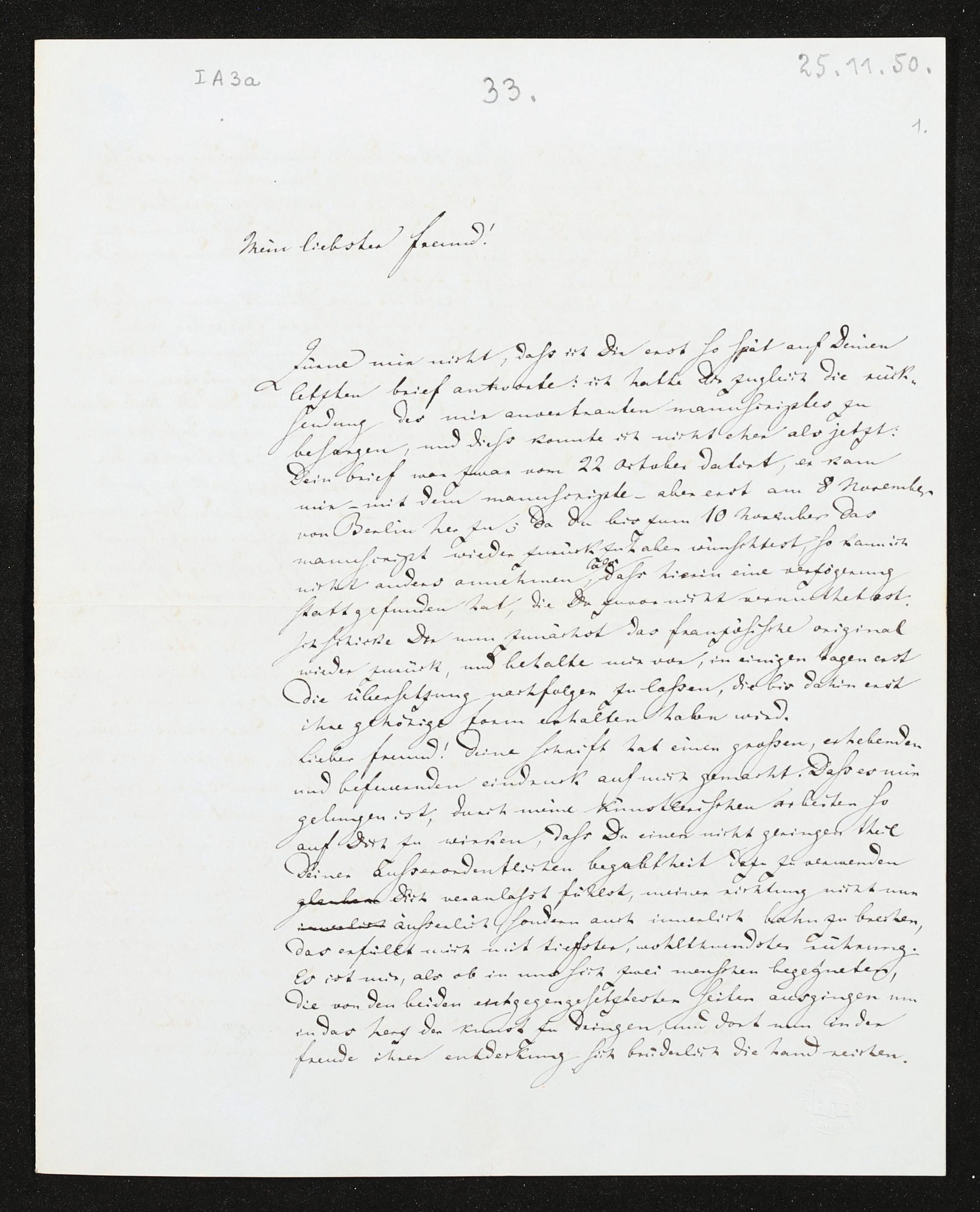 eigenhändiger Brief von Richard Wagner an Franz Liszt