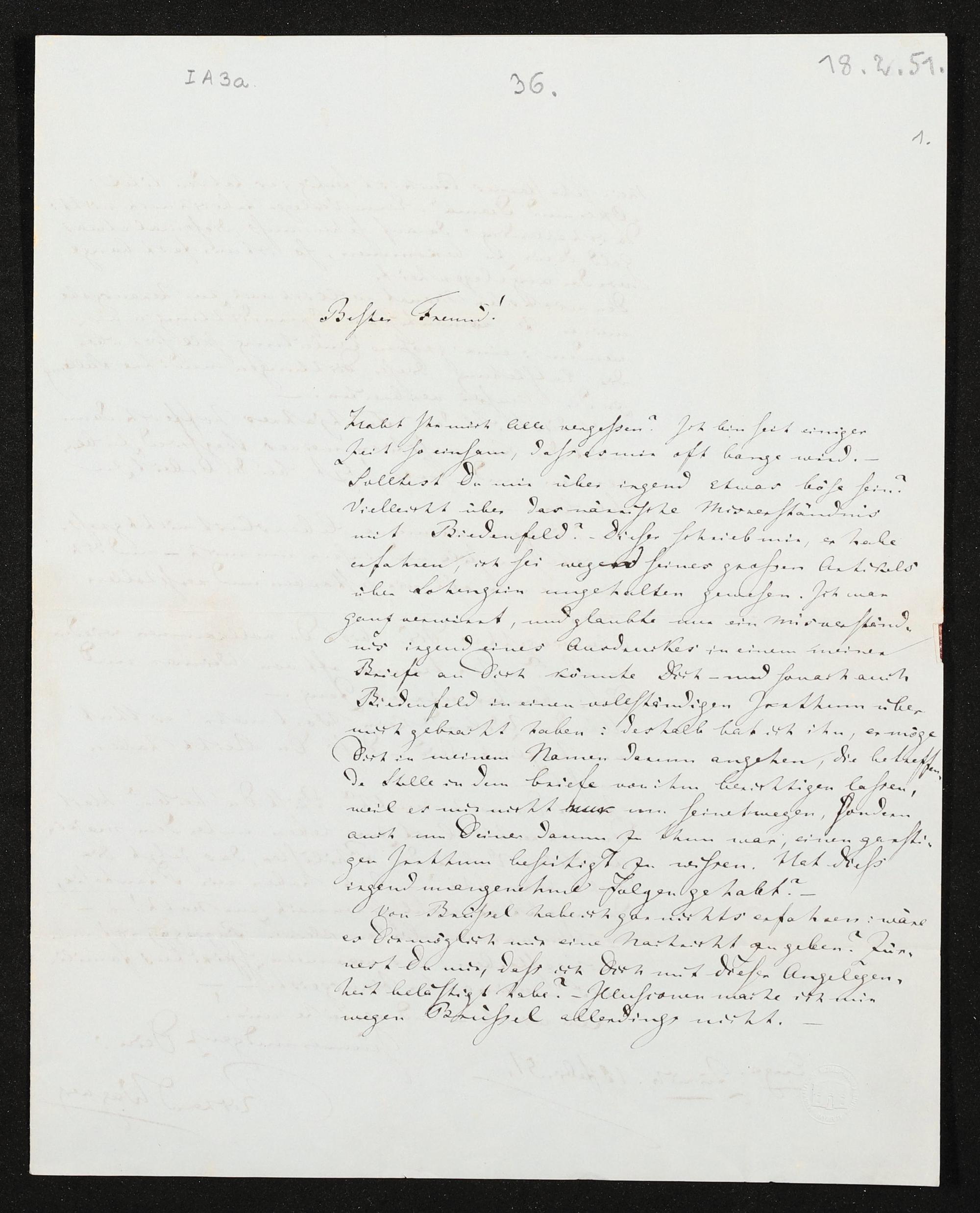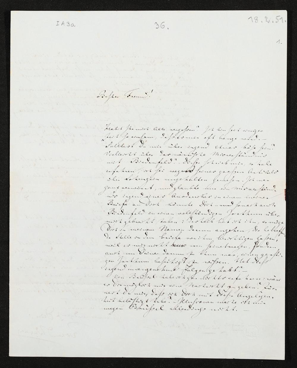 eigenhändiger Brief von Richard Wagner an Franz Liszt